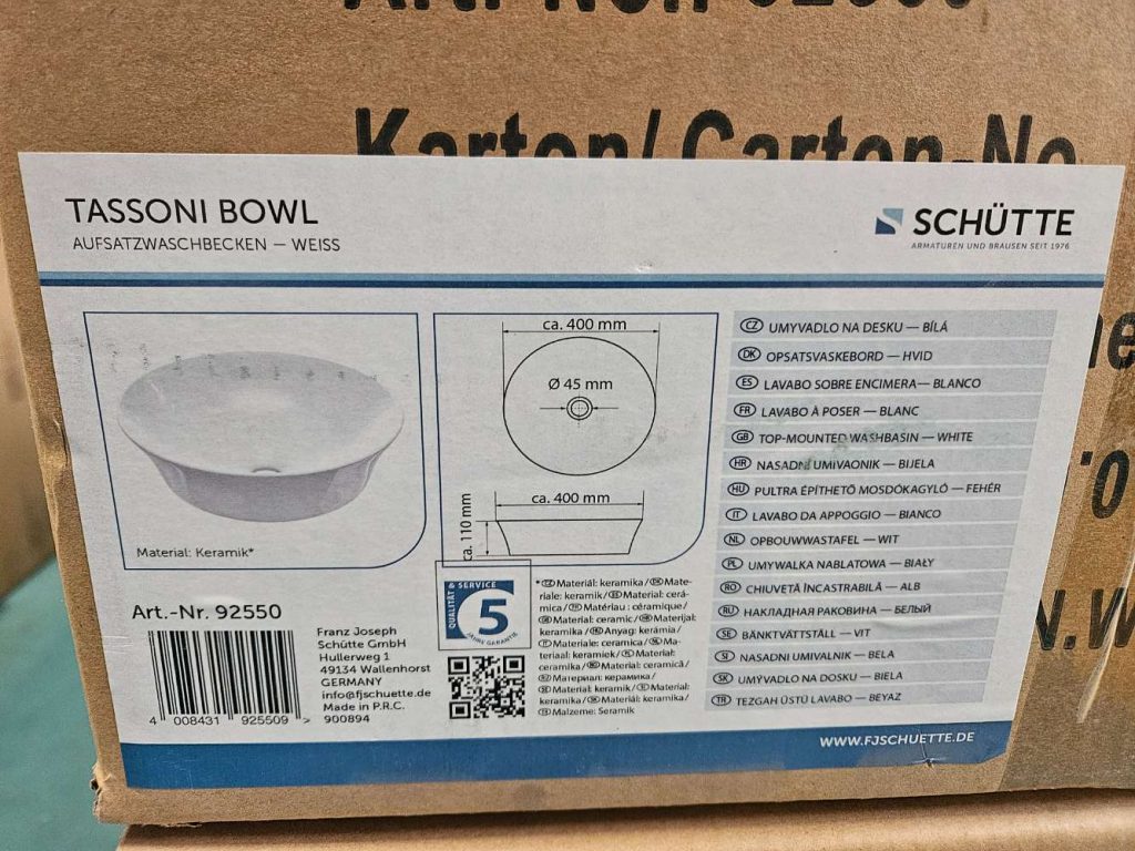 Schütte Aufsatzwaschbecken Weiß Keramik statt 109€