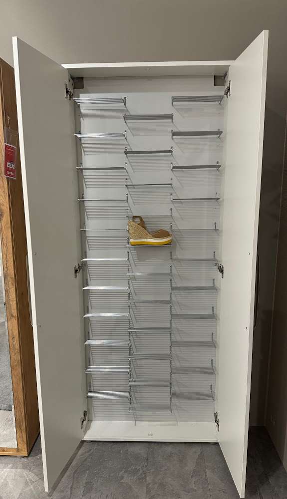Ein besonderes Highlight des "Polygon" ist der integrierte Schuhschrank, der mit 33 Schuhrosten ausgestattet ist. Diese Roste gewährleisten nicht nur eine ordentliche Aufbewahrung Ihrer Schuhkollektion, sondern erleichtern auch den Zugriff und die Übersicht. Obwohl der Schrank eine schmale Bauweise aufweist, überrascht er durch seine Geräumigkeit und die effiziente Nutzung des Innenraums. Der Garderobenschrank "Polygon" ist mehr als nur ein Möbelstück – er ist ein Ausdruck von Stil und Organisation. Der renommierte Hersteller WITTENBREDER garantiert dabei Qualität und Langlebigkeit.