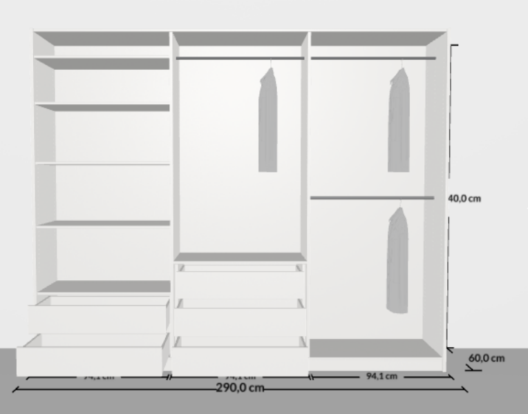 Maße B/H/T 290/240/60cm