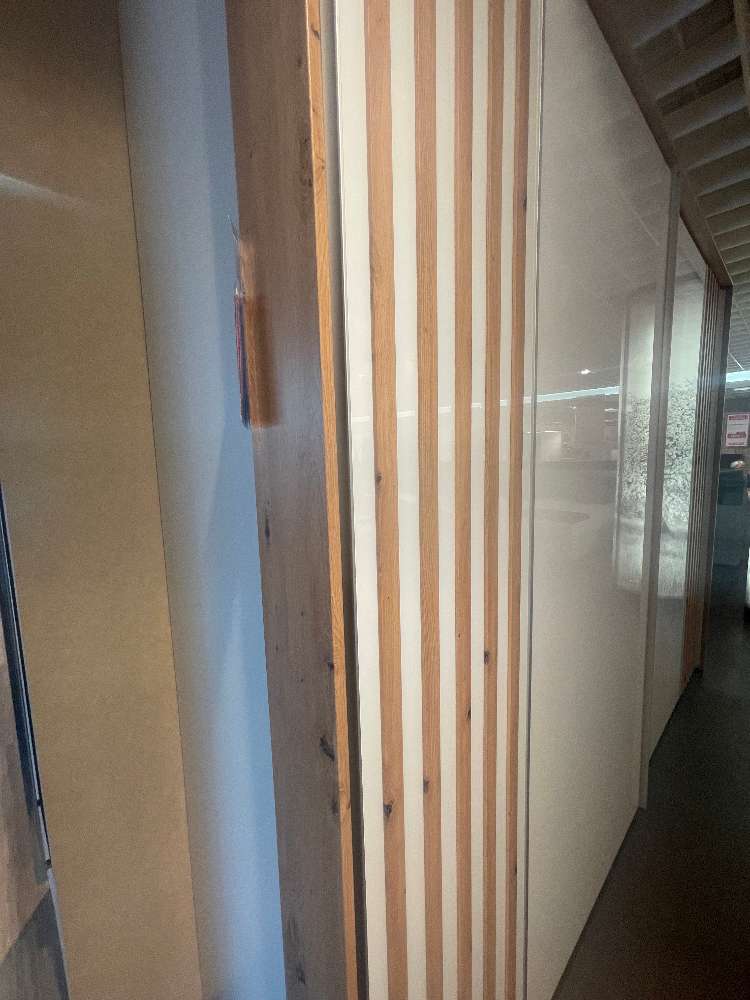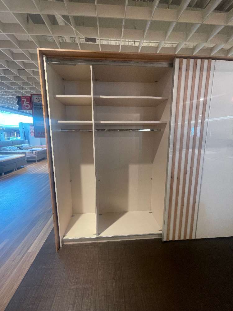 - Fr.: Alpinweißglas / Eiche Artisan - Ko.: Dekor weiß - Griff- und Zierleisten: alufarbig - B/H/T: ca. 298x243x74,4cm - inkl. Zubehör und Inneneinteilung
