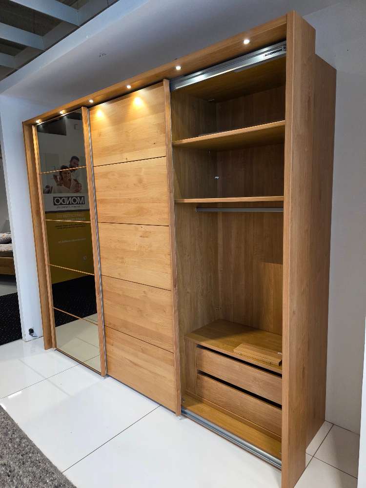 BemerkungDer Schwebetürenschrank Cardiff von WIEMANN vereint modernes Design mit funktionaler Eleganz. Als Austellungsstück besticht er durch seine klare Linienführung und hochwertige Verarbeitung. Dieser Schrank fügt sich nahtlos in jedes Schlafzimmer ein und bietet großzügigen Stauraum für Kleidung und Accessoires. Die Schwebetüren gleiten mühelos zur Seite und eröffnen ein geräumiges Inneres, das Ordnung und Übersichtlichkeit garantiert. Der Cardiff ist mehr als nur ein Möbelstück; er ist ein Statement für zeitgemäße Wohnkultur. Mit seiner schlichten, aber eleganten Erscheinung und der typischen WIEMANN-Qualität bietet dieser Schrank eine stilvolle Lösung für all jene, die einen Hauch von Luxus in ihrem Schlafzimmer schätzen. Ein zeitloser Begleiter, der sowohl in der Präsentation als auch im täglichen Gebrauch überzeugt.