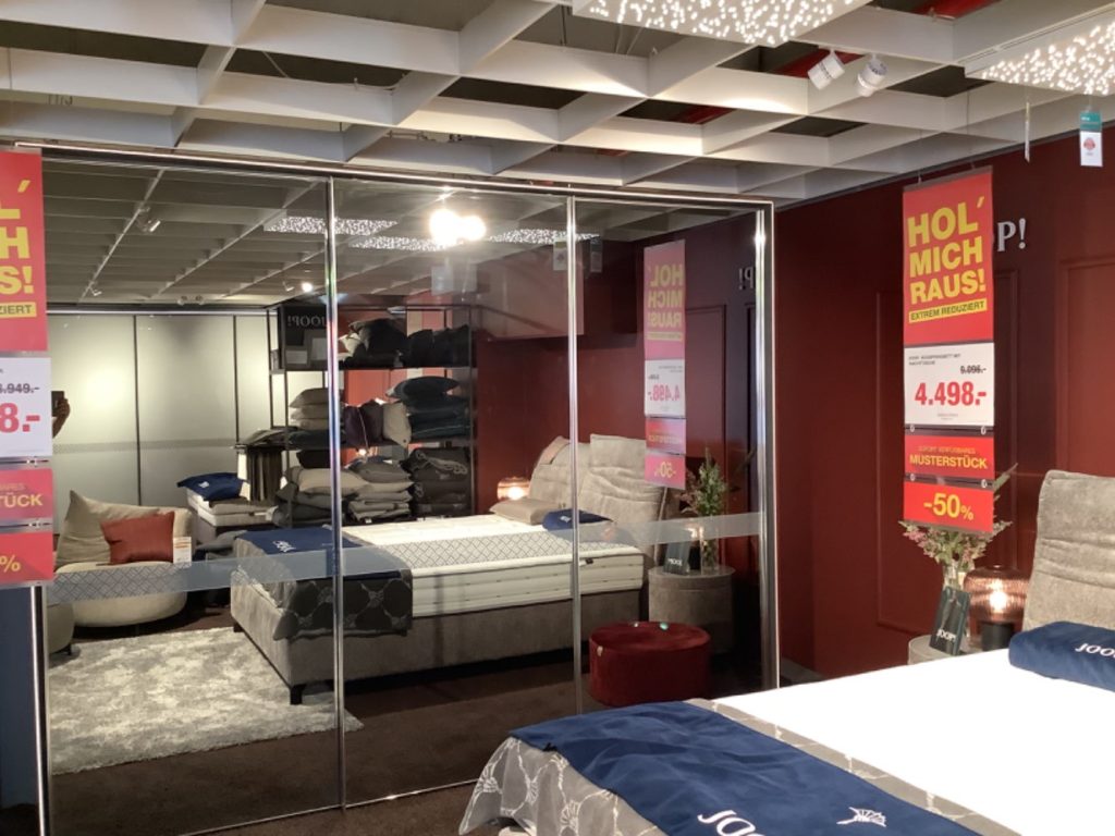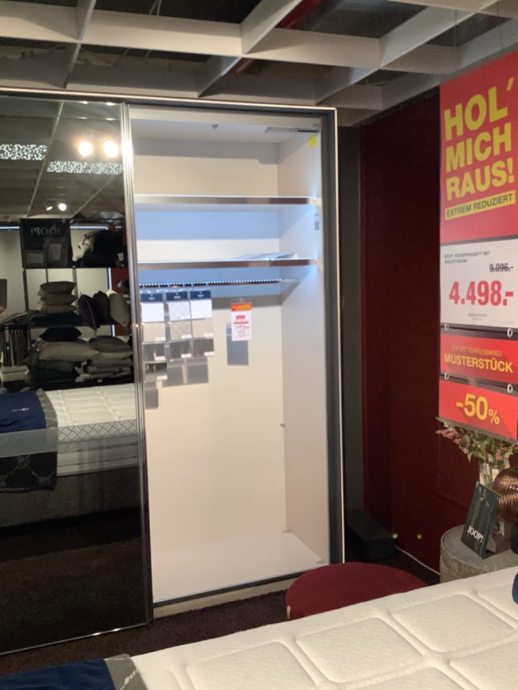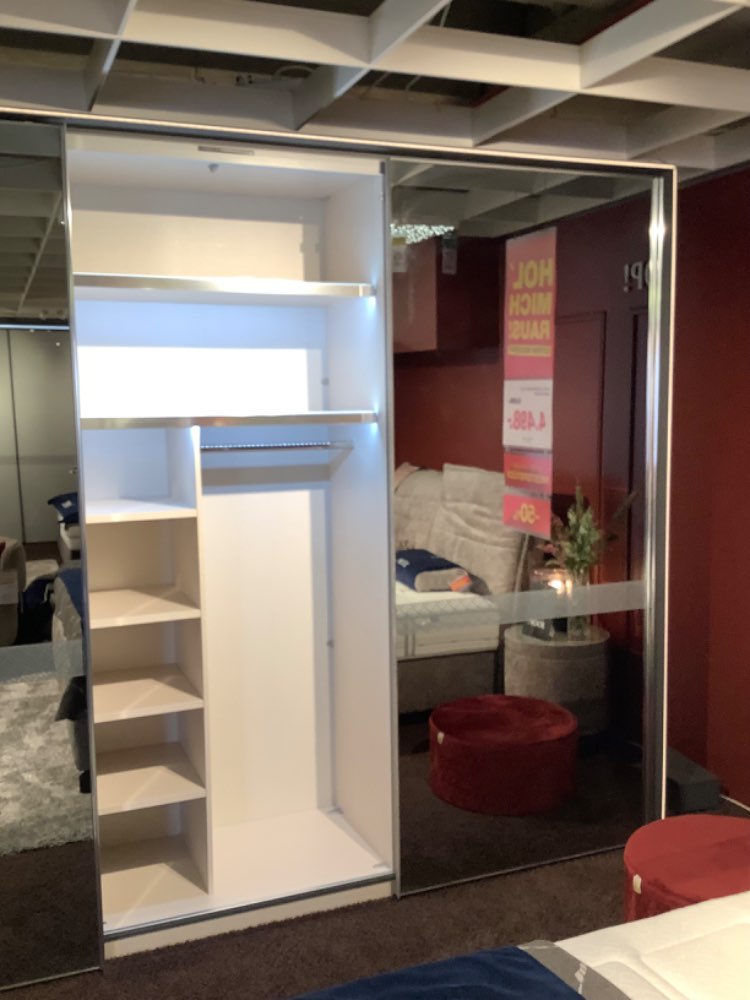 BemerkungSchwebetürenschrank: ca. B298xH240xT68cm, Front Glas, inkl. Beleuchtung mit Bewegungsmelder, T-Einteilung, Schubkasteneinsatz, Dämpfer, Passepartout