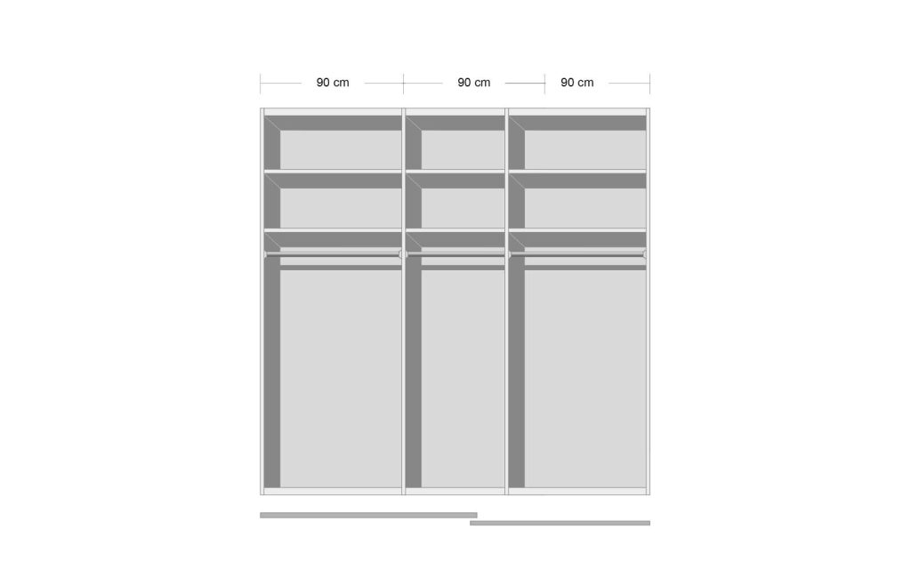 3-türig, Inneneinteilung ca. 100/100/100 cm mit je 2 Einlegeböden und je 1 Kleiderstange pro Element