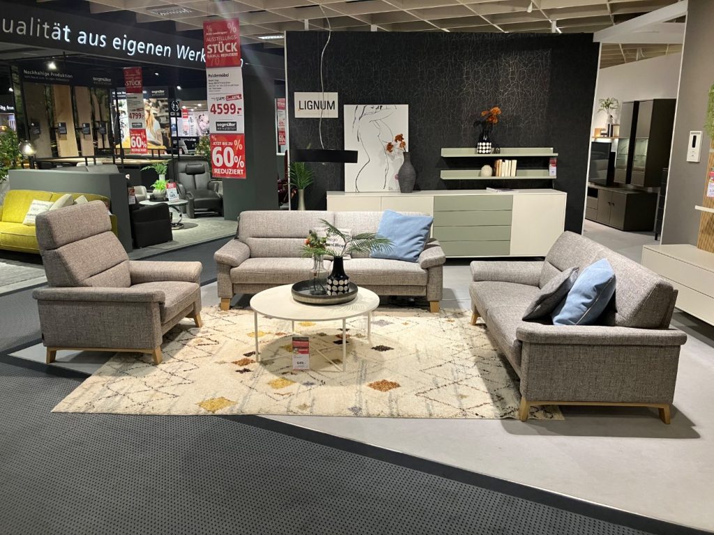 BemerkungDie 3-2-1 Gruppe „Diego“ von den SEGMÜLLER WERKSTÄTTEN vereint stilvolle Eleganz mit außergewöhnlichem Komfort und Beständigkeit. Diese Ausstellungsware stellt eine perfekte Symbiose aus modernem Design und zeitloser Ästhetik dar. Die glatten Linien und fein verarbeiteten Details unterstreichen das hochwertige Handwerk, das in jedem Element dieser Möbelgruppe steckt. Ob im Wohnzimmer oder einem anderen Raum, „Diego“ fügt sich nahtlos in jede Umgebung ein und bietet dabei ausreichend Sitzgelegenheiten für Ihre Gäste. Die Materialien sind sorgfältig ausgewählt, um sowohl Komfort als auch Langlebigkeit zu gewährleisten. Mit ihrer dezenten Ausstrahlung sorgt die 3-2-1 Gruppe für eine harmonische Atmosphäre und lädt zum Entspannen ein. Ob beim gemütlichen Gespräch, Filmabenden oder einfach nur zum Entspannen – „Diego“ ist der ideale Begleiter für jede Gelegenheit und zeigt, dass herausragendes Design und Funktionalität Hand in Hand gehen können.