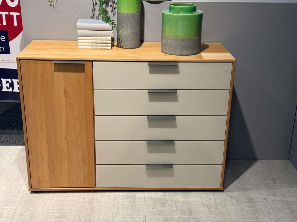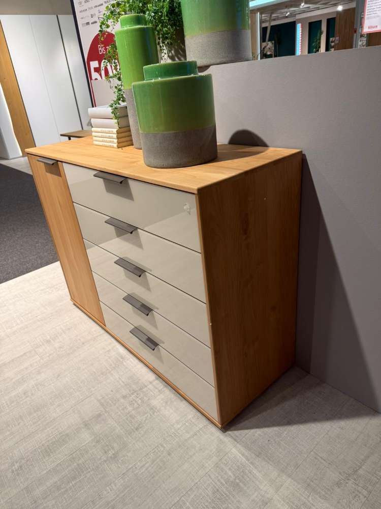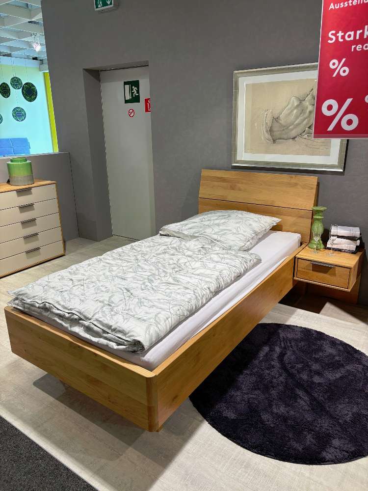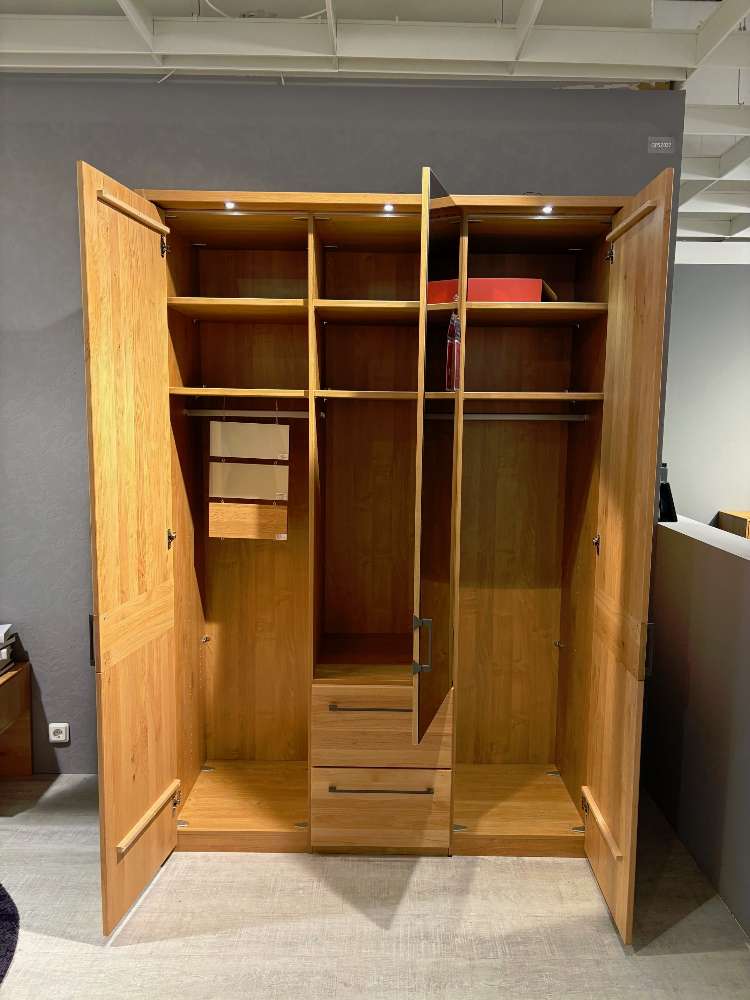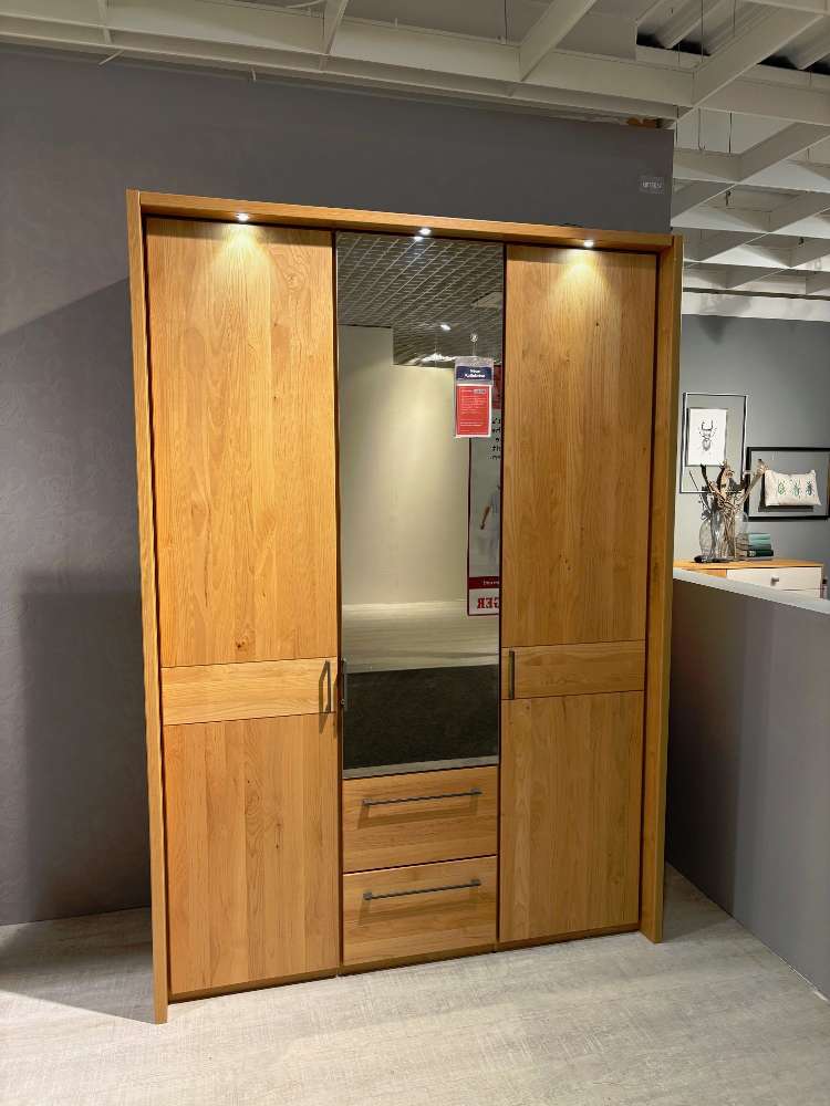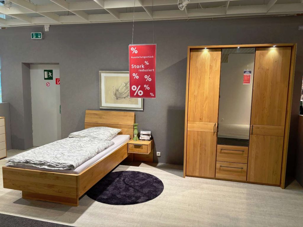 Bemerkung Das Schlafzimmer-Set Modena Plus von OESEDER MÖBEL-INDUSTRIE bringt Eleganz und Funktionalität in Ihr Zuhause. In edlem Erle teilmassiv gehalten, strahlt das Ensemble Wärme und zeitlose Schönheit aus. Der dreitürige Kleiderschrank bietet mit seinen sechs Einlegeböden, zwei Kleiderstangen sowie zwei Auszügen ausreichend Platz für Ihre Garderobe und wird durch einen Passepartout-Rahmen mit drei integrierten Leuchten stilvoll akzentuiert. Einer der Türen ist mit einem praktischen Spiegel ausgestattet. Das Komfort-Bett beeindruckt mit einem stabilen Holzkopfteil und einer angenehmen Betthöhe, die den Ein- und Ausstieg erleichtert. Die schieferfarbenen Griffe und Bettfüße verleihen dem Design eine moderne Note. Ergänzt wird dieses Set durch einen schwebenden Nachtschrank mit einem Auszug, der für zusätzlichen Stauraum sorgt. Die dazu passende Kommode rundet das Gesamtbild harmonisch ab und bietet weitere Möglichkeiten, all Ihre persönlichen Dinge stilvoll zu verstauen. Als Ausstellungsware überzeugt das Set durch ein hervorragendes Preis-Leistungs-Verhältnis.