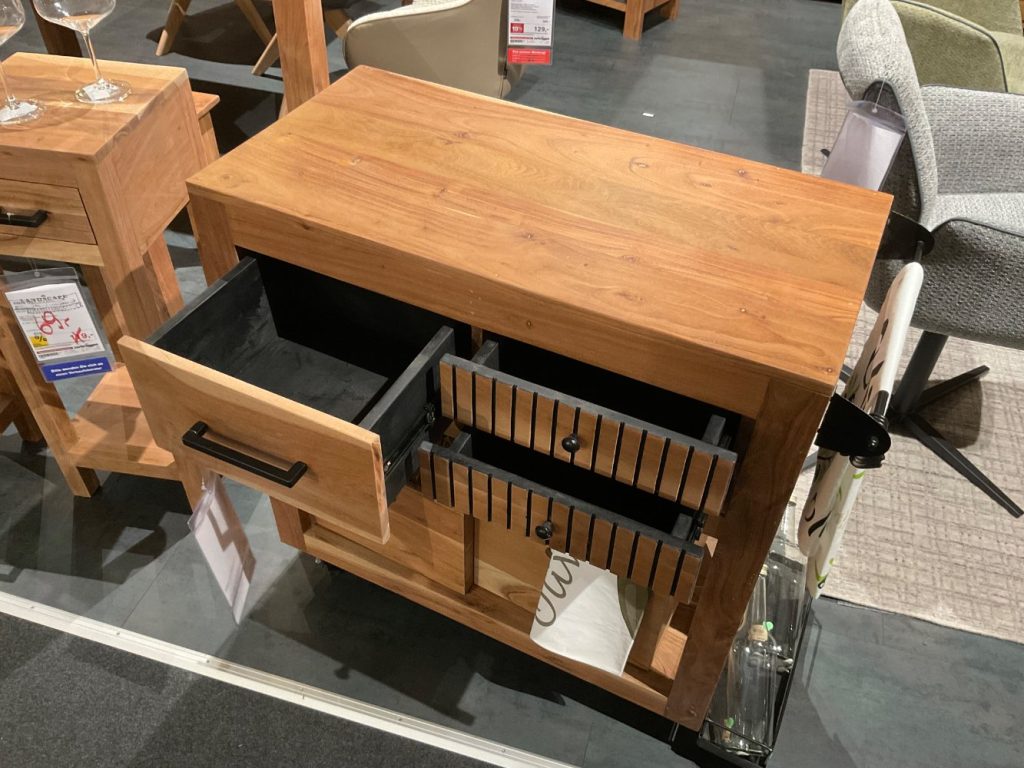 BemerkungDer GUTMANN Küchenwagen Modell Akazio bringt Stil und Funktionalität in Ihre Küche. Aus massivem Akazienholz gefertigt, verleiht dieser Küchenwagen jedem Raum eine warme, natürliche Eleganz. Mit seiner reichen Holzfarbe ergänzt er sowohl moderne als auch traditionelle Küchenstile. Der Wagen ist als Ausstellungsware erhältlich, was auf seine hohe Qualität und Liebe zum Detail hinweist. Ausgestattet mit drei praktischen Schubkästen, bietet er großzügigen Stauraum für Ihr Kochzubehör, Geschirr oder andere Küchenutensilien.
