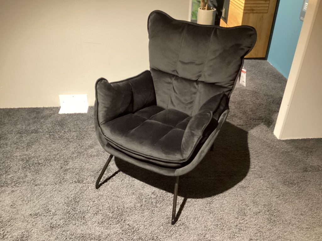 Sessel „Jules“ von „Designwerk“, Velours schwarz, Vierfußgestell