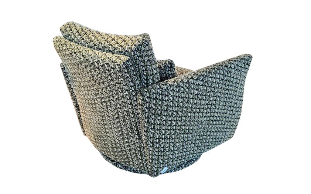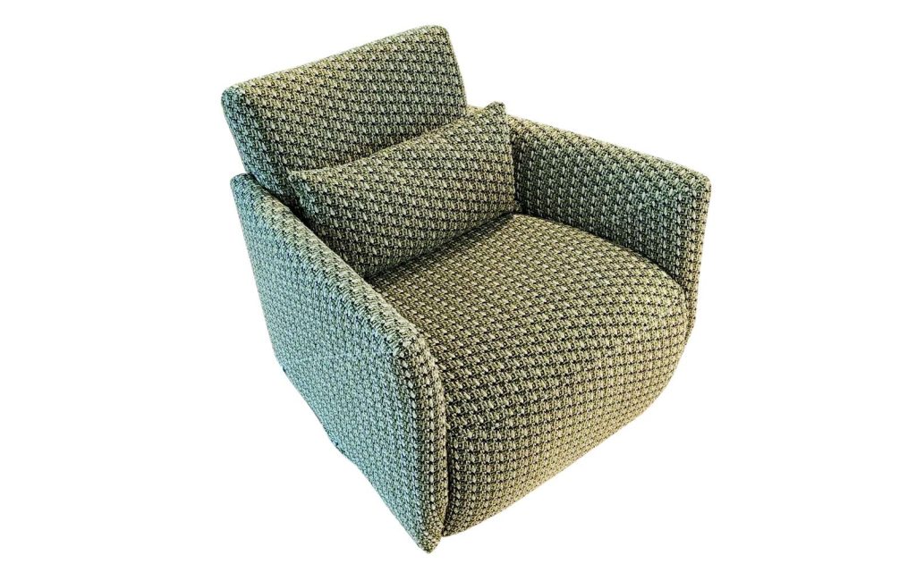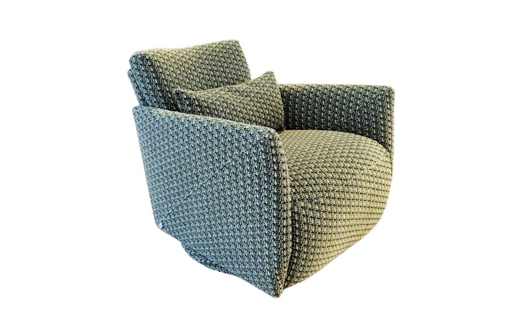BemerkungModerner Einzelsessel mit praktischem Drehteller, 360º drehbar beides mit Stoffbezug in der modernen und warmen Farbe Lyrique Thyme, Ziernaht Ton in Ton.