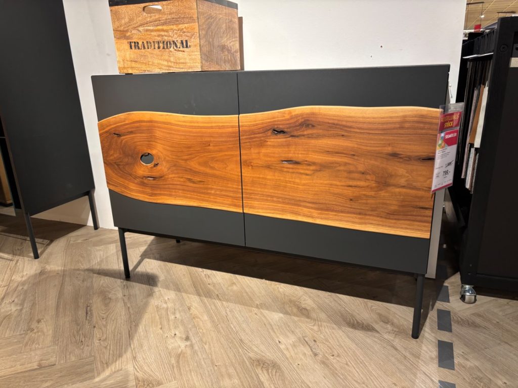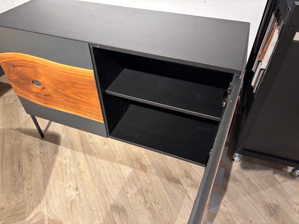 Sideboard 18Hundert von Wimmer 2 Türen (Tip-On), 2 Holzeinlegeböden Korpus: Buche massiv, schwarz Metall: schwarzgrau Massivholz: Nussbaum