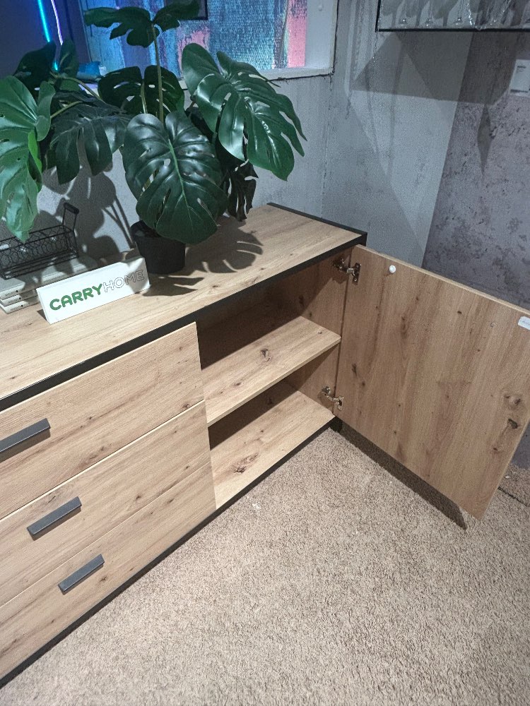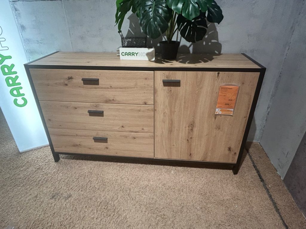 B / H / T: 146 x 83 x 40 cm Füße: - Form: eckig - Farbe: Anthrazit Türe: - Art: Drehtür - Anzahl: 1 - Soft-Close-System: Nein - Türdämpfung: Nein Griffe: - Farbe: Anthrazit - Art: Griffleiste Einlegeböden: - Anzahl: 1 - Max. Belastbarkeit pro Boden: 5 kg Schubladen: -Anzahl: 3 - Soft-Close-System: Ja - Komfort-/Vollauszug: Nein Farbe: - Eiche - Anthrazit Detail: Max. Belastbarkeit gesamt: 40 kg