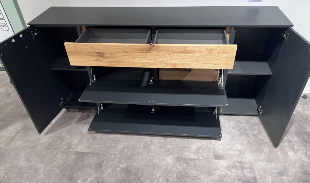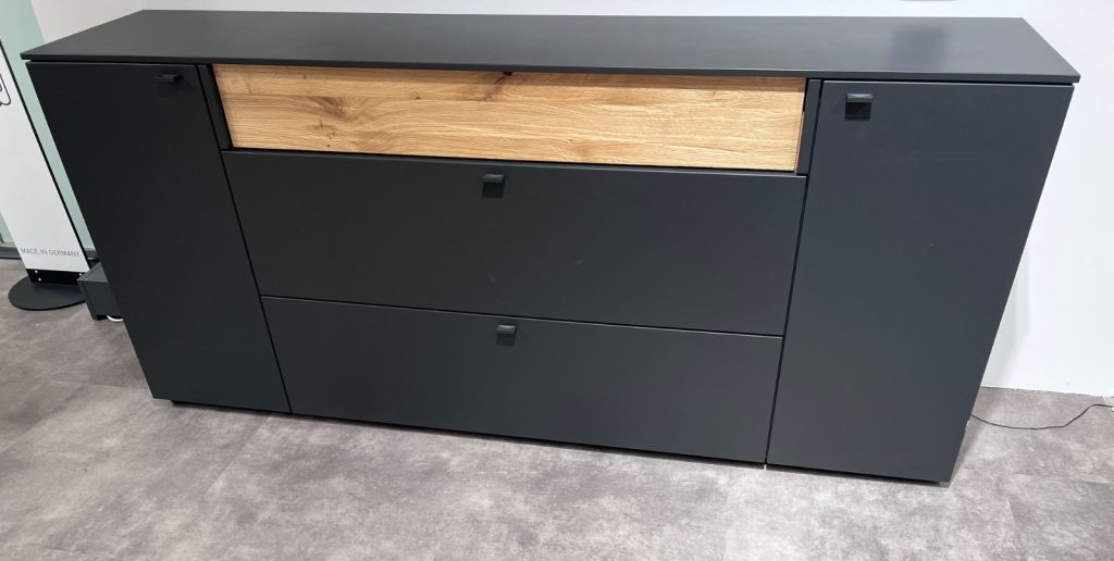 Sideboard, Lack Anthrazit Matt, Akzent Eiche gehackt geölt