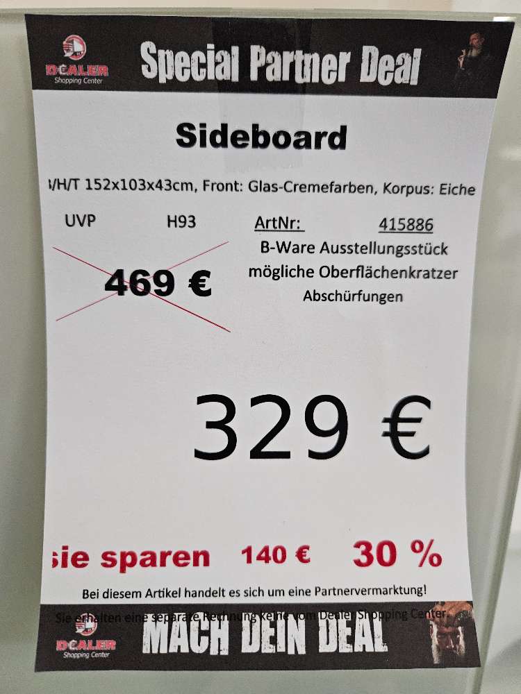 Sideboard Glas-Cremfarbend Eiche statt 469€