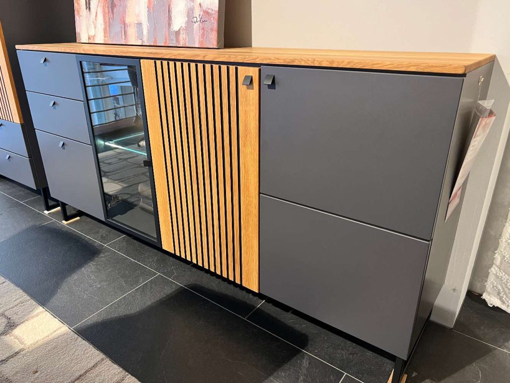 BemerkungTauche ein in die Welt von INTERLIVING mit diesem exquisiten Möbelstück in der Farbe Quarzgrau/Charaktereiche. Als Ausstellungsware bietet es nicht nur höchste Qualität, sondern auch einen Einblick in das Designverständnis einer renommierten Marke. Die harmonische Farbkombination aus Quarzgrau und der erdigen Wärme der Charaktereiche verleiht jedem Raum ein zeitgemäßes und einladendes Ambiente. INTERLIVING steht für modernes Wohnen, das Funktionalität und Ästhetik verbindet, und dieses Möbelstück ist ein perfektes Beispiel dafür. Egal, in welchem Raum es Platz findet, es wird unweigerlich zum Blickfang und ergänzt hervorragend verschiedene Einrichtungsstile. Erfahre die meisterhafte Kombination aus Form und Funktion und schaffe ein Zuhause, in dem Du Dich rundum wohlfühlst.