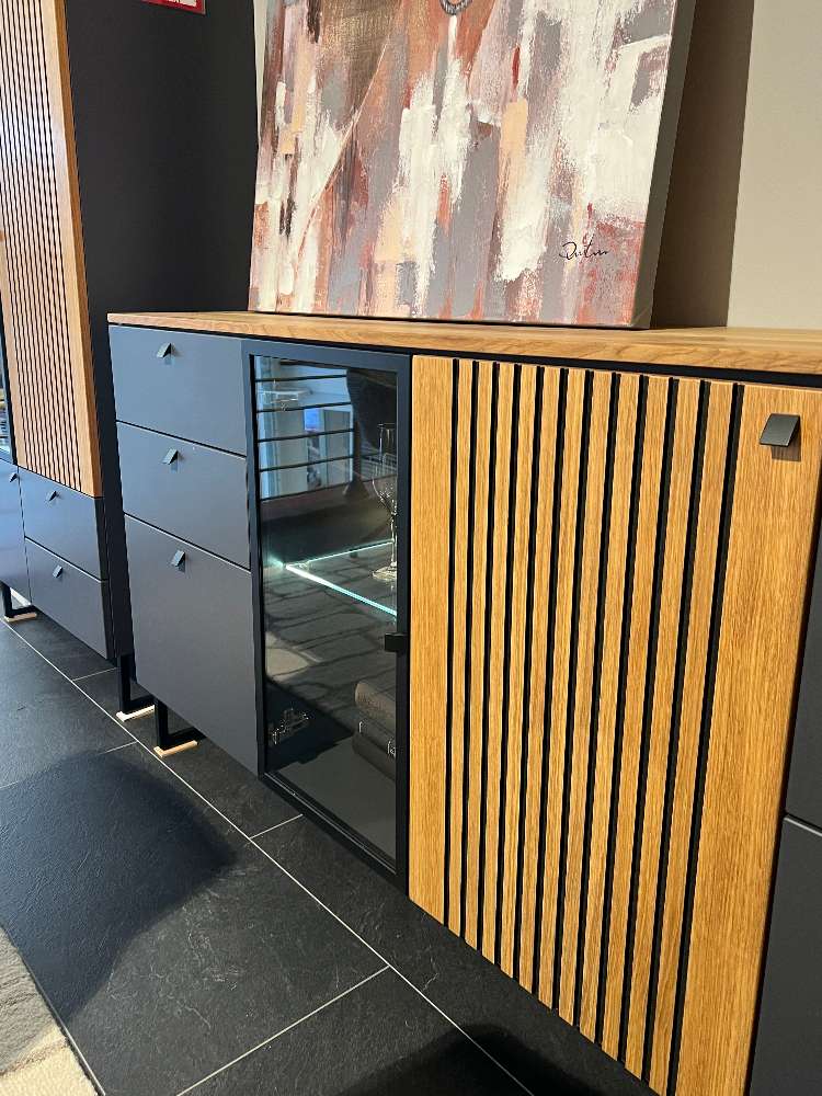 BemerkungEntdecken Sie die zeitlose Eleganz und Funktionalität des INTERLIVING Möbelstücks in der Farbe Quarzgrau gepaart mit dem natürlichen Charme der Charaktereiche. Dieses Ausstellungsstück vereint meisterhaft modernes Design mit rustikalen Akzenten und schafft so eine harmonische Atmosphäre in Ihrem Zuhause. Die charaktervolle Maserung der Eichenholz-Elemente verleiht jedem Raum Wärme und einen Hauch von natürlicher Schönheit.