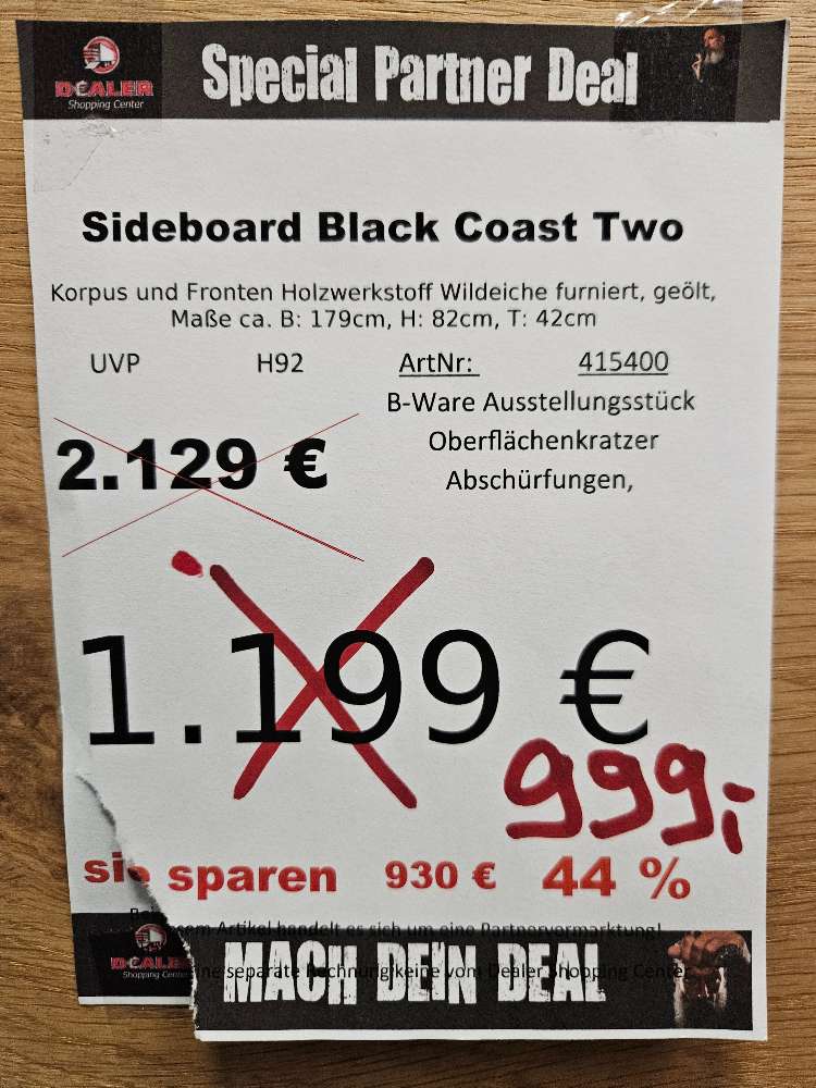 Bemerkung Mach deinen Deal! Hierbei handelt es sich um ein Angebot vom Dealer Shopping Center! Standort des Artikels ist Zeitz Kretzschau. Details wie technische Daten oder Schäden entnehmen Sie dem Bild mit Preis. BEZAHLUNG:  Bargeld, EC-Kartenzahlung, Kreditkarte oder 0% Finanzierung mit Consors Bank. RESERVIERUNG: Bei einem längeren Anfahrtsweg und vorheriger Absprache mit dem Verkäufer vor Ort ist eine Reservierung, für die Dauer der Fahrt -maximal  jedoch für 4 Stunden- möglich. Von Sonderanfragen bitten wir abzusehen. WICHTIG Bitte telefonisch erfragen ob der Wunschartikel noch verfügbar ist. Zwischenverkauf vorbehalten. Die Besichtigung, der Verkauf und die Abholung erfolgt ausschließlich bei unserem Handelspartner. Dealer Shopping Center , 06712 Kretzschau Zeitz Grana, Leipziger Straße 18, Ihren Ansprechpartner erreichen Sie telefonisch unter 015906377060 Öffnungszeiten : MO-FR 9:00-18:00 Uhr, SA 9:00 – 14:00 Uhr. Alle Inserate sind unverbindlich. Preisirrtümer und Änderungen vorbehalten. Abbildung ähnlich. Mehrere Rabattaktionen sind nicht kombinierbar. Weitere sichtbare Artikel können bei Verfügbarkeit zusätzlich erworben werden!