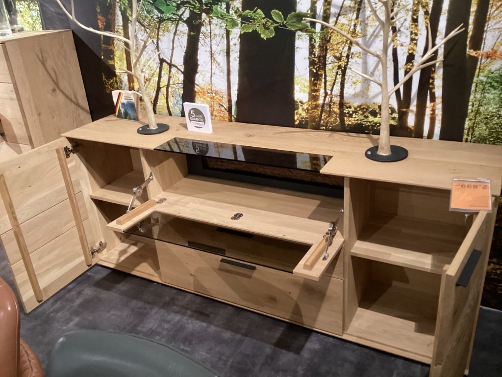 Bemerkung Das HARTMANN Modell "Lavia" beeindruckt durch seine edle Verarbeitung und das zeitlose Design, das in jedem Raum eine stilvolle Atmosphäre schafft. Gefertigt aus Natureiche, besticht das Möbelstück durch die natürliche Maserung und die warme Ausstrahlung des Holzes. Die Maße von 192x77x44cm machen es zu einem großzügig bemessenen Element, das vielseitig eingesetzt werden kann. Die robuste Struktur mit einem stabilen Sockel unterstreicht nicht nur die Qualität der Verarbeitung, sondern sorgt auch für eine zuverlässige Standfestigkeit. Obwohl "Lavia" als Ausstellungsware dient, verliert es nicht an Charme oder Funktionalität. Es verkörpert die perfekte Balance zwischen moderner Eleganz und natürlichem Charisma, ideal für alle, die ihrem Zuhause einen Hauch von zeitlosem Design verleihen möchten.