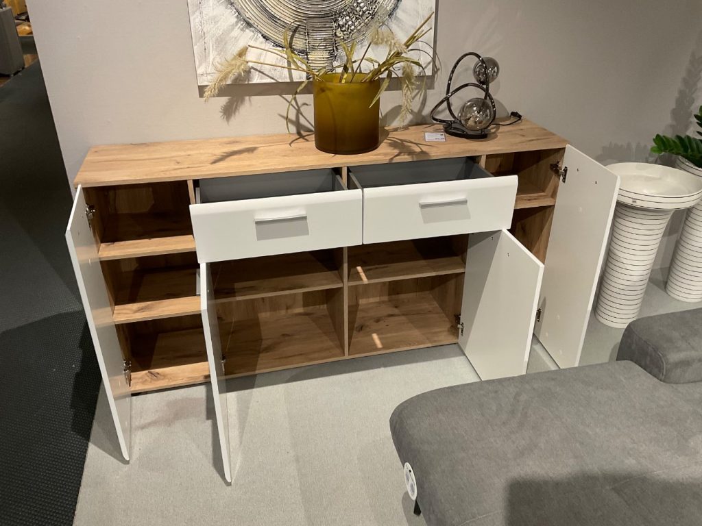 BemerkungDie Milano Type 20 Kommode vereint modernes Design mit funktionaler Eleganz. Mit einer Breite von 175 cm, einer Höhe von 88 cm und einer Tiefe von 42 cm bietet sie reichlich Stauraum und passt perfekt in jedes Wohnambiente. Der Korpus in Viking Oak Nature Nachbildung verleiht der Kommode eine natürliche, warme Ausstrahlung, die durch die weißen, matten MDF-Fronten stilvoll ergänzt wird. Die Absetzung in Viking Oak Nature sorgt dabei für eine harmonische Gesamtoptik.