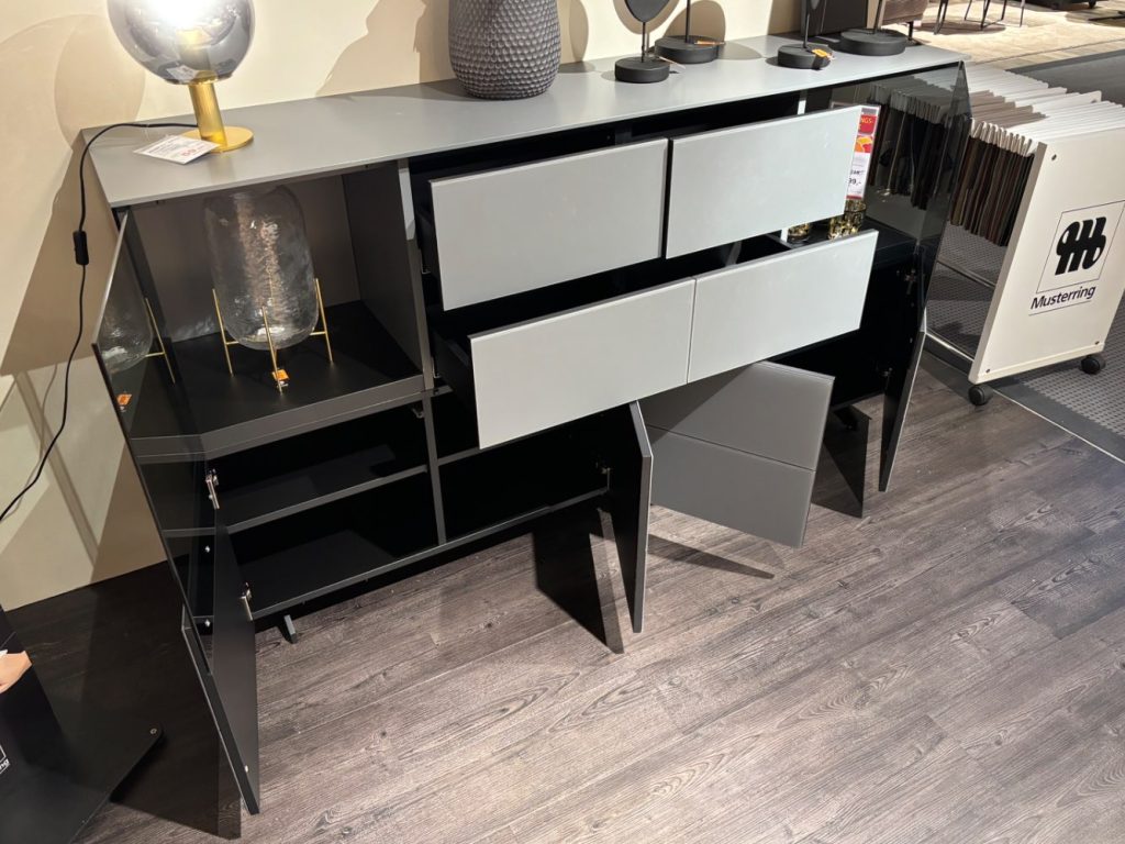 Sideboard inklusive Beleuchtung in Lack grau Fußgestell: schwarz