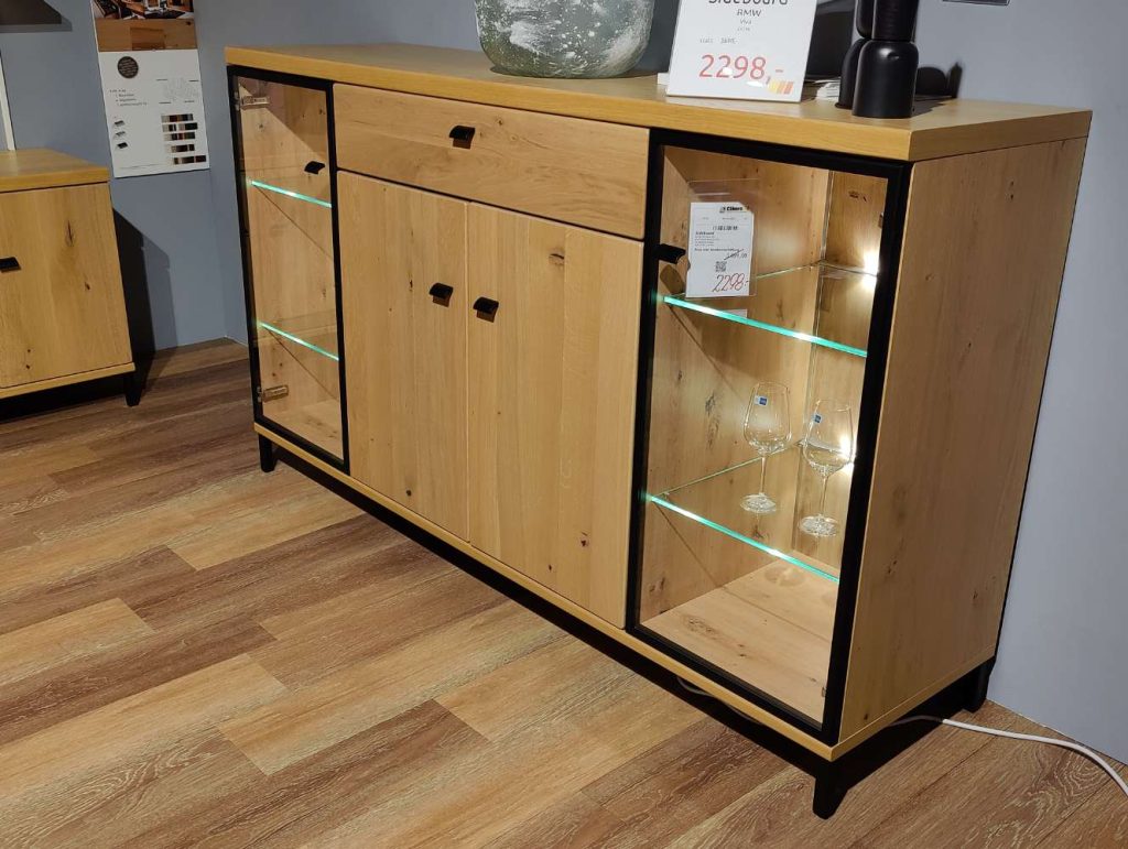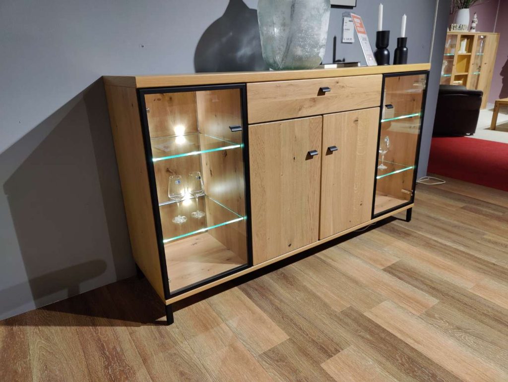 BemerkungDas Modell Viva von RMW besticht durch seine beeindruckende Kombination aus natürlicher Eleganz und funktionalem Design. Gefertigt aus massivem Asteiche-Holz, strahlt dieses hochwertige Qualitätsmöbelstück eine zeitlose Schönheit aus, die Ihre Wohnräume aufwerten wird. Die warme Farbgebung der Asteiche verleiht dem Möbelstück eine behagliche und einladende Atmosphäre. Mit den großzügigen Maßen von 180 x 105 x 49 cm bietet dieses Ausstellungsstück ausreichend Stauraum und überzeugt gleichzeitig durch seine ästhetische Präsenz.