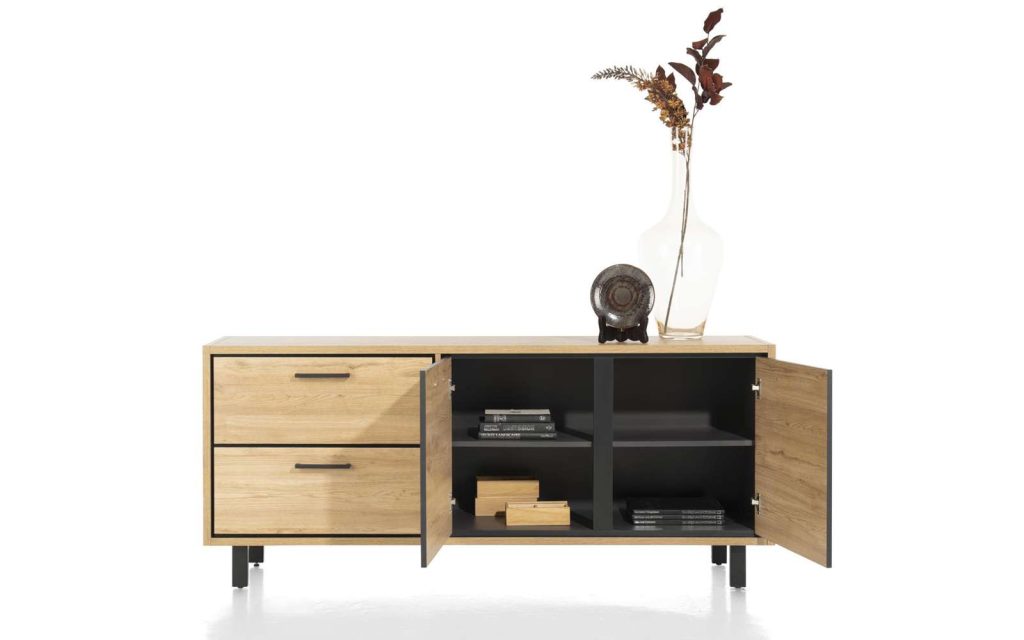 Ausführung Primo Laminato vintage oak, Füße Metall off black 2 türig und 2 Schubladen BHT ca. 180/ 78/ 42 cm