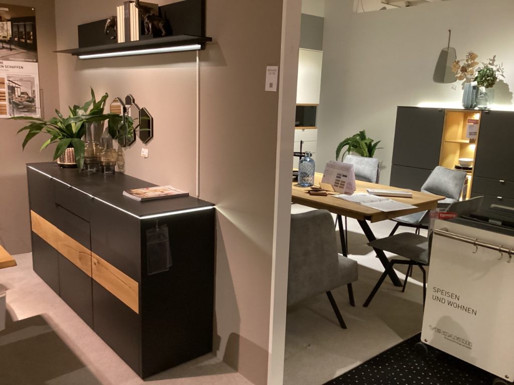 Sideboard + Wandpaneel, Lack anthrazit matt, Akzent Balkeneiche, incl. LED_Beleuchtungspaket, Sideboard ca. 189 x 89 x 43 cm, Wandpaneel ca. 186 x 25 x 19 cm
