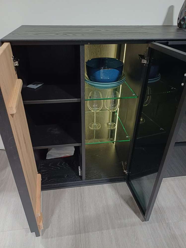 Wildeiche massiv natur / Wiledeiche schwarz / Glas schwarz