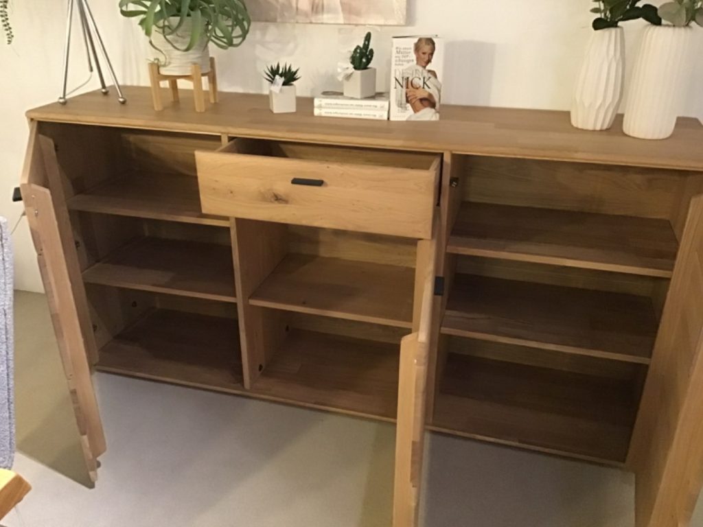 Eine massives Siedeboard in Eiche geölt sorgt für zusätzlichen Stauraum