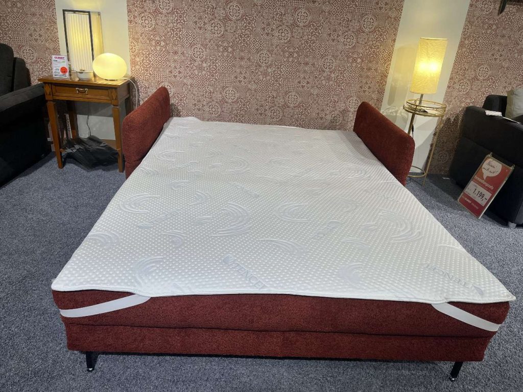 BemerkungDie Doria Doppelliege von RESTYL ist ein elegantes Möbelstück, das sowohl in Wohnräumen als auch in Gästezimmern eine ansprechende Figur macht. Als Ausstellungsstück bietet sie ein hervorragendes Preis-Leistungs-Verhältnis und spiegelt den innovativen Geist eines hochwertigen Herstellers wider. Mit ihrem zeitgemäßen Design fügt sie sich nahtlos in unterschiedliche Einrichtungsstile ein und sorgt durch ihre Funktionalität für Flexibilität im Raum. Die klaren Linien und der dezent gehaltene Bezug verleihen der Liege eine einladende und moderne Ästhetik. Dank ihrer durchdachten Konstruktion lässt sie sich mit wenigen Handgriffen in ein komfortables Schlafsofa verwandeln. Dies ermöglicht eine bequeme Lösung für Übernachtungsgäste, ohne auf Stil verzichten zu müssen. Die Doria Doppelliege von RESTYL verbindet somit praktischen Nutzen mit einem hohen Maß an Designanspruch.