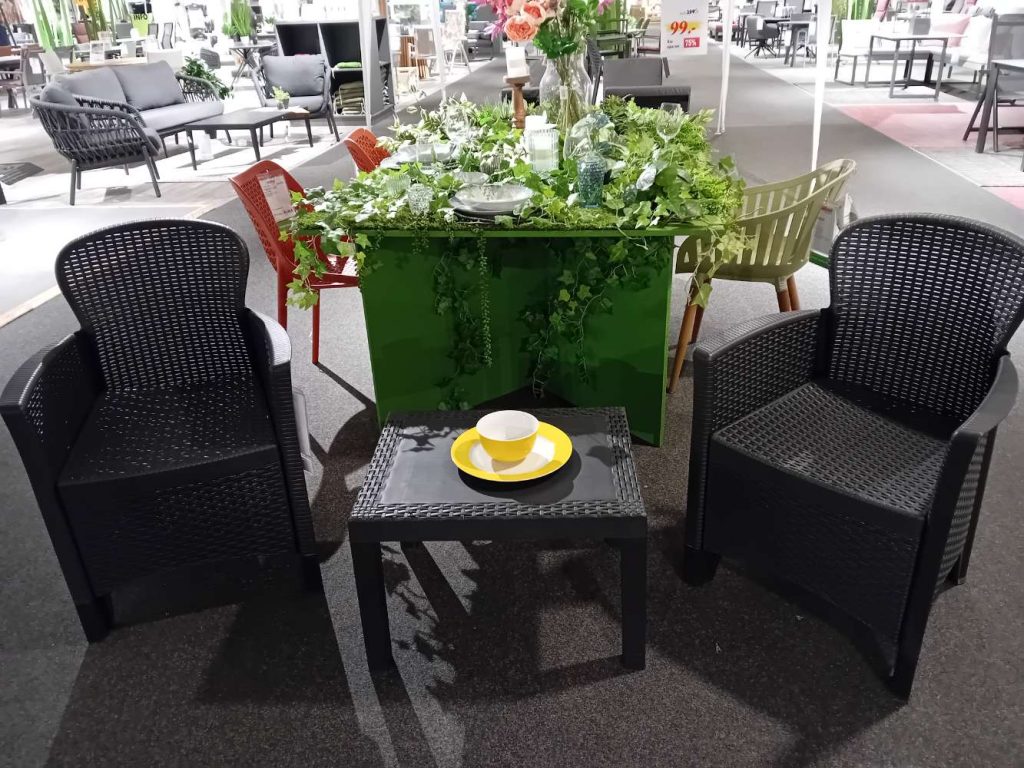 BemerkungVerwandeln Sie Ihren Außenbereich in eine stilvolle Oase mit diesem 3-teiligen Gartenmöbel-Set. Gefertigt aus Kunststoff, bietet dieses Set eine perfekte Kombination aus Langlebigkeit und modernem Design, die sowohl funktional als auch ästhetisch ansprechend ist. Als Austellungsware besticht es durch seinen erstklassigen Zustand und bietet Ihnen die Möglichkeit, sich in Ihrem Garten, auf der Terrasse oder dem Balkon eine komfortable und entspannende Umgebung zu schaffen.