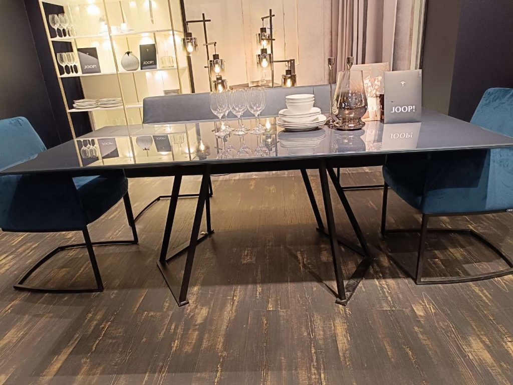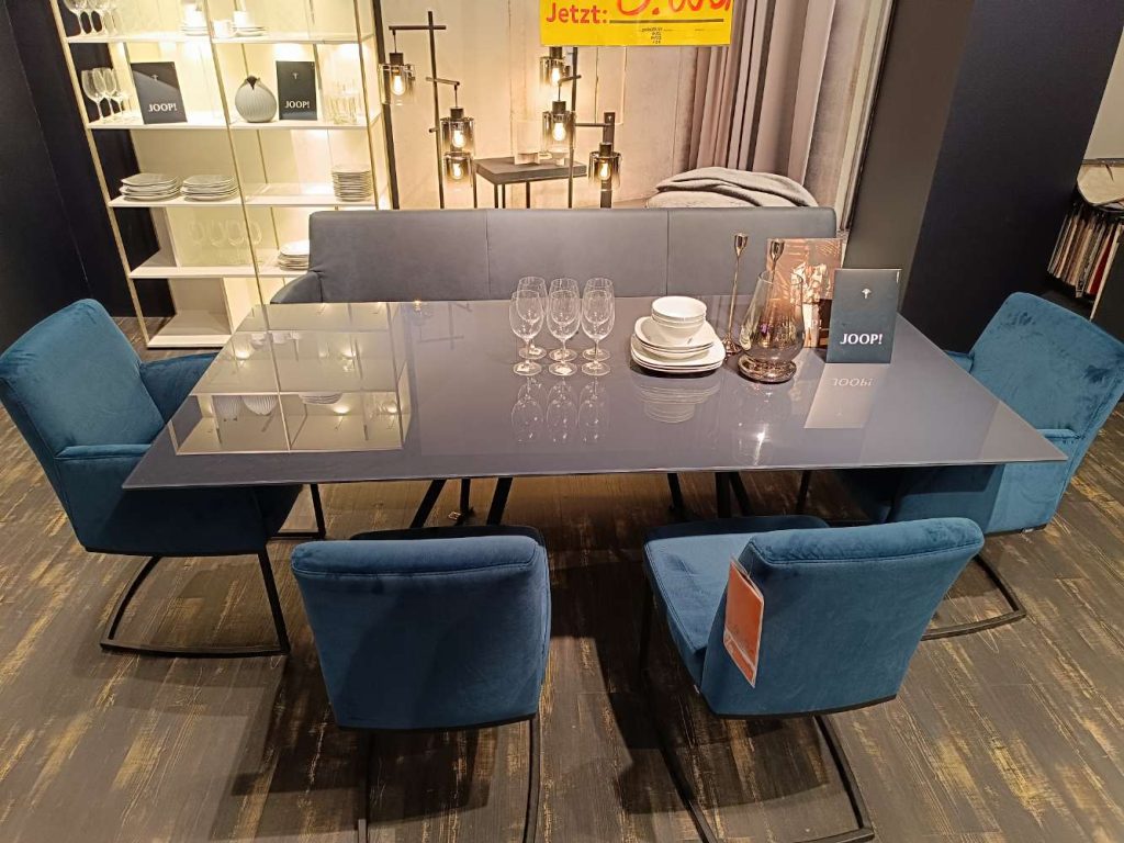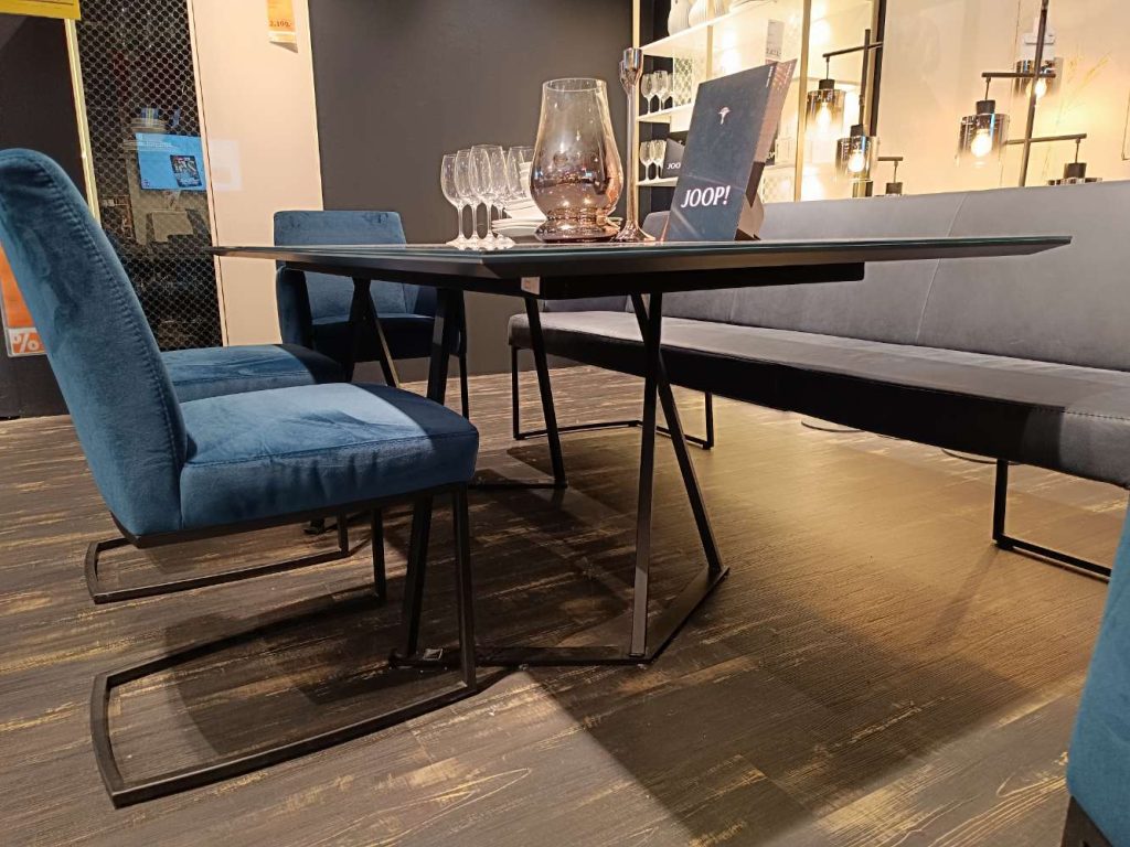 Material-Beschreibung Bank: Echtleder, Stühle: Stoff