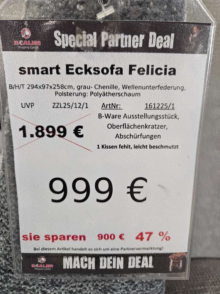 smart Ecksofa Couch Felicia Chenile Grau statt 1899€