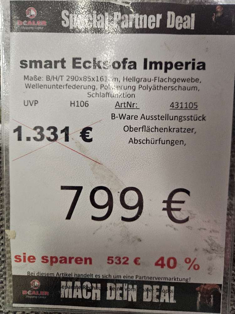 smart Ecksofa Imperia Flachgewebe Hellgrau statt 1331€