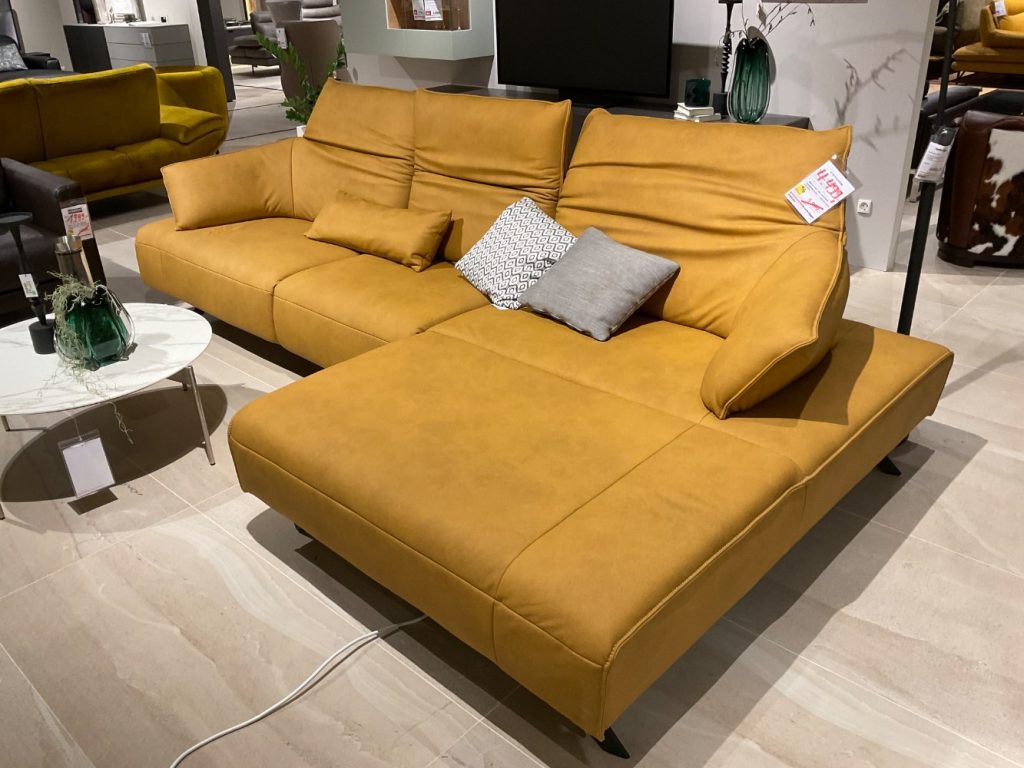 BemerkungDas Modell 1052 SIGNA von HIMOLLA vereint luxuriösen Komfort mit stilvoller Eleganz. Dieses Ecksofa in der faszinierenden Leder Leonessa Ananas Ausführung besticht durch seine lebendige und zugleich sanfte Farbgebung, die jedem Raum ein besonderes Flair verleiht. Gefertigt aus hochwertigem Echtleder, bietet das Sofa eine angenehme Haptik und Langlebigkeit, die selbst bei intensiver Nutzung beständig bleibt. Die prägnanten Kontrastnähte setzen akzentuierte Highlights und unterstreichen die handwerkliche Qualität und Detailverliebtheit des Designs.