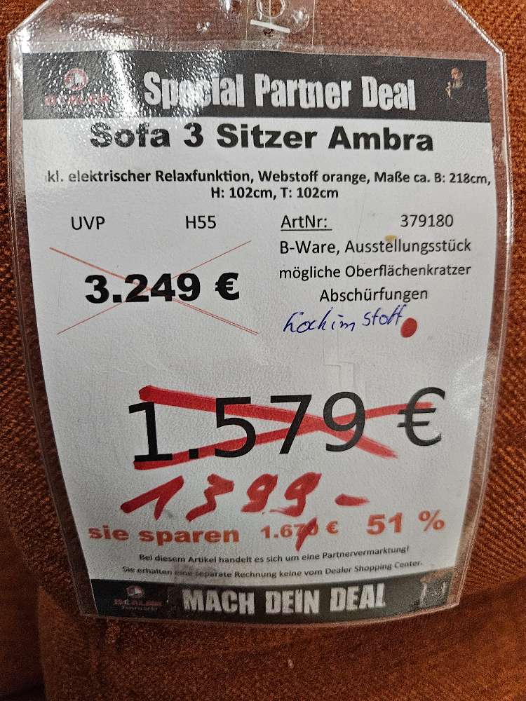 Sofa Couch 3 Sitzer Ambra Relaxfunktion statt 3249€