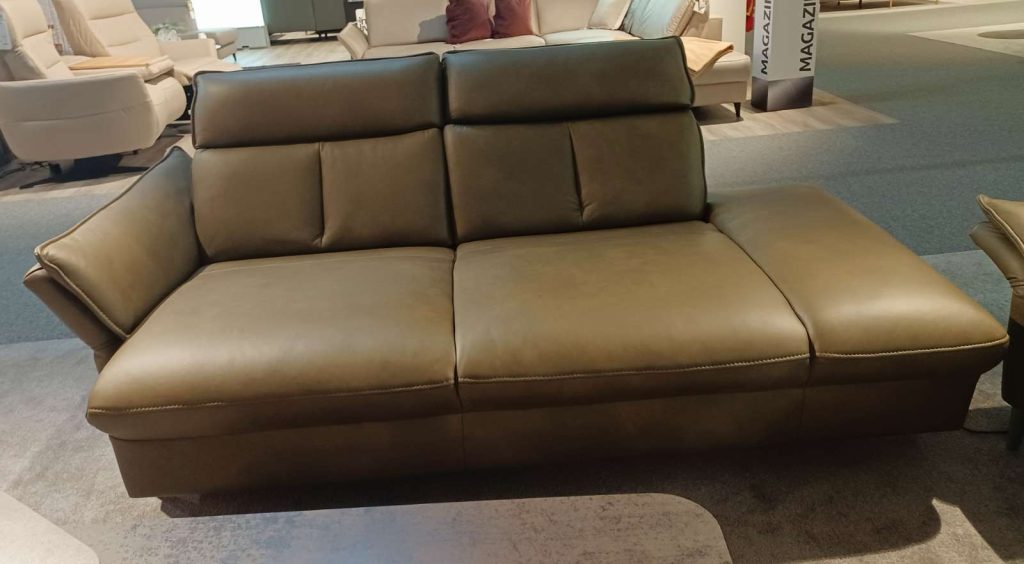 Dank der motorischen Vorziehbank in der Recamiere sowie der motorischen WAH1-Funktion auf beiden Seiten des 3-Sitzers, ermöglicht dieses Sofa individuelle Anpassungen für optimalen Komfort. Die manuell einstellbaren Kopfstützen und die Liegearmlehnen bieten darüber hinaus zusätzliche Unterstützung und Funktionalität. Die polierten Aluminiumfüße verleihen der Garnitur zudem eine moderne Note und unterstreichen das elegante Design. Mit den großzügigen Maßen von ca. 220 x 97-112 x 97 passt sich dieses Sofa perfekt in Wohnungen und moderne Wohnzimmer an und bietet sowohl Einzelpersonen als auch Familien den ersehnten Komfort. Als Ausstellungsstück überzeugt die Garnitur durch ihre exquisite Verarbeitung und hochwertige Materialien.