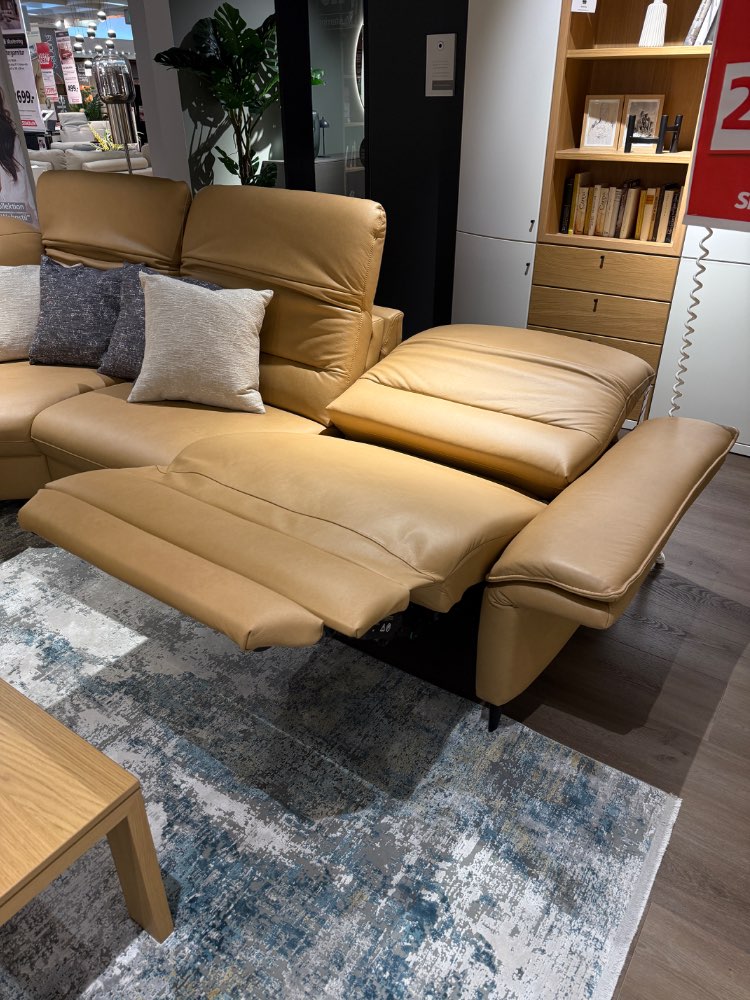 Inkl. motorischer Relaxfunktion + Akku, Funktionsablage, Aufklappbarer Anstellhocker, Kopfteilverstellung und Liegearmlehne, Sitzhöhe: 46 cm, Stellmaß: ca. 259 x 295 cm
