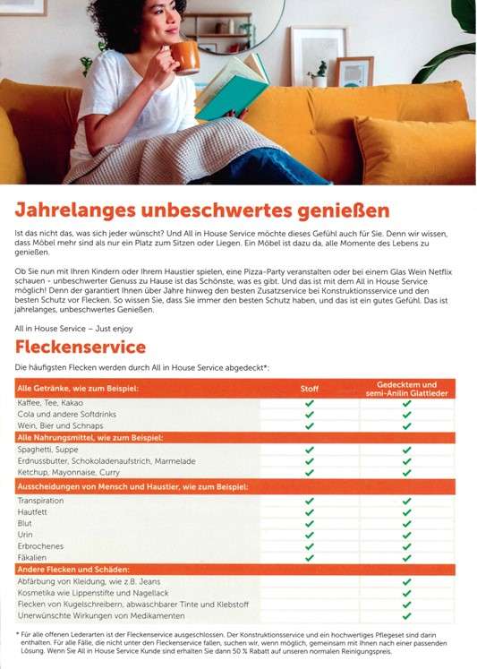 BemerkungFLECKSCHUTZSERVICE mit 5 Jahren Garantie für 119,00 Euro zubuchbar.