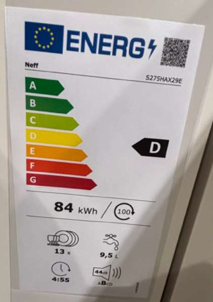 Energieklasse: A (Spektrum: Von A+++ bis D) Energylabel A Spektrum: Von A+++ bis D