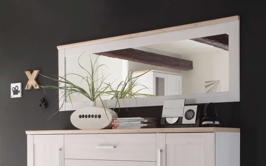 Spiegel in Sibiu-Lärche-Nachbildung und Absetzungen in San Remo-Eiche-Nachbildung, passende Ergänzung zu der Serie Romance. B/H/T ca. 186 x 63 x 4 cm.