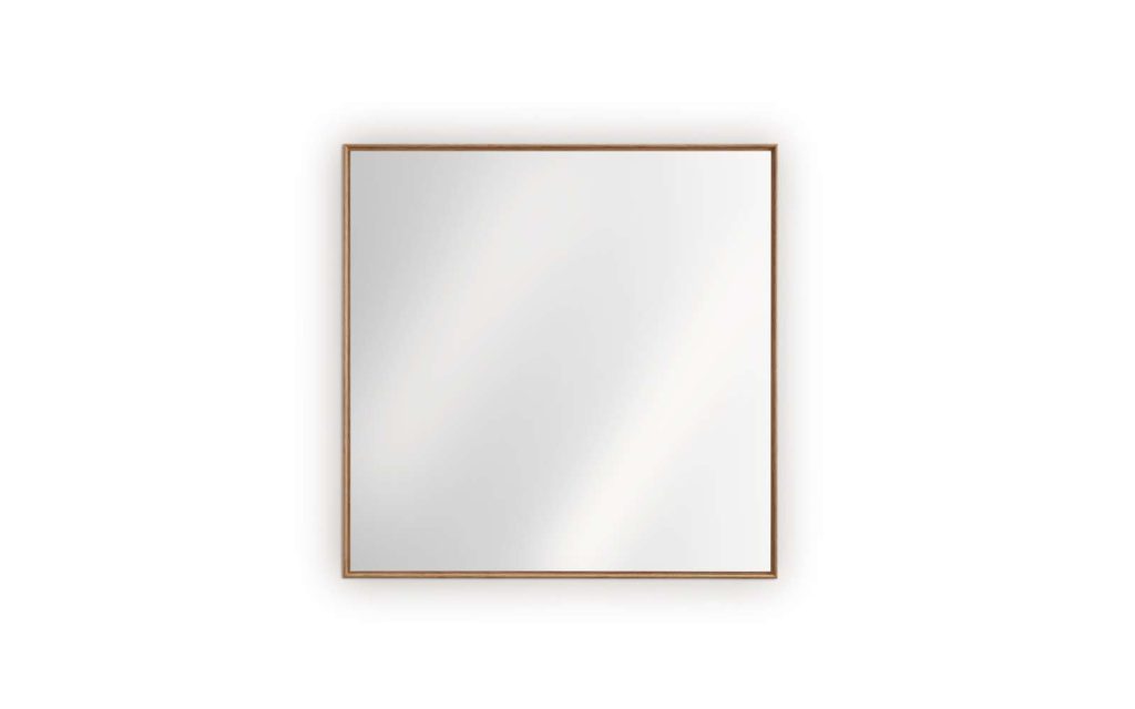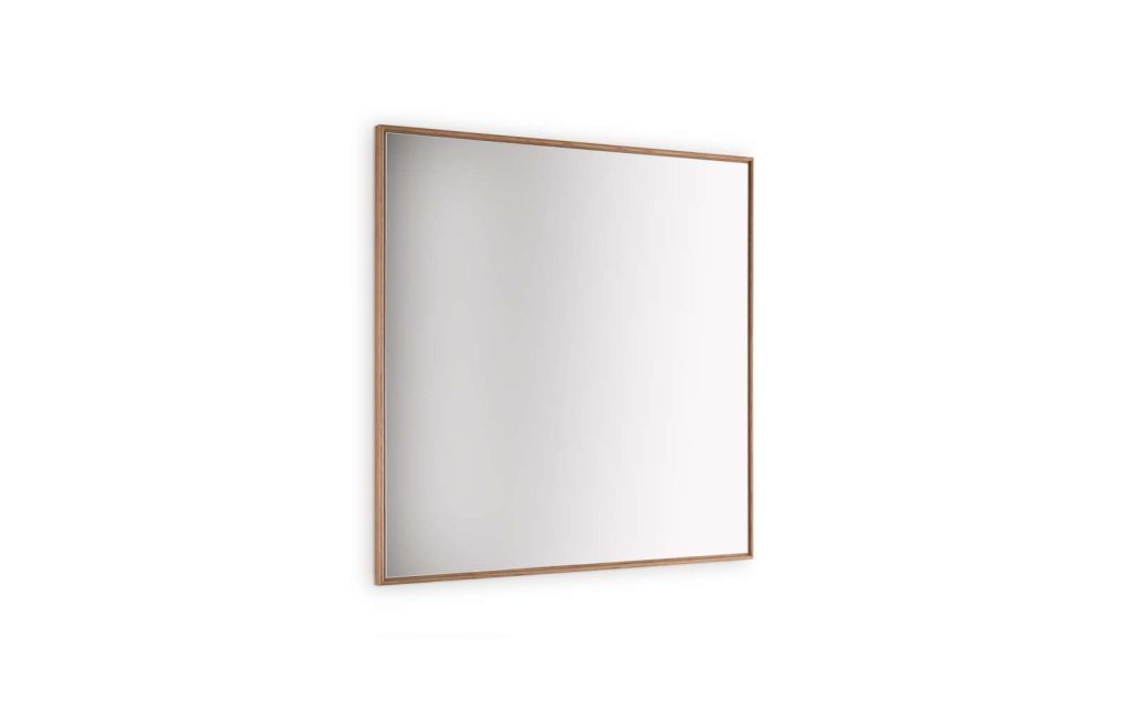 Spiegel mit Rahmen aus massiver, astiger Eiche, naturbelassen, geölt, B/H/T ca. 80 x 80 x 3 cm.