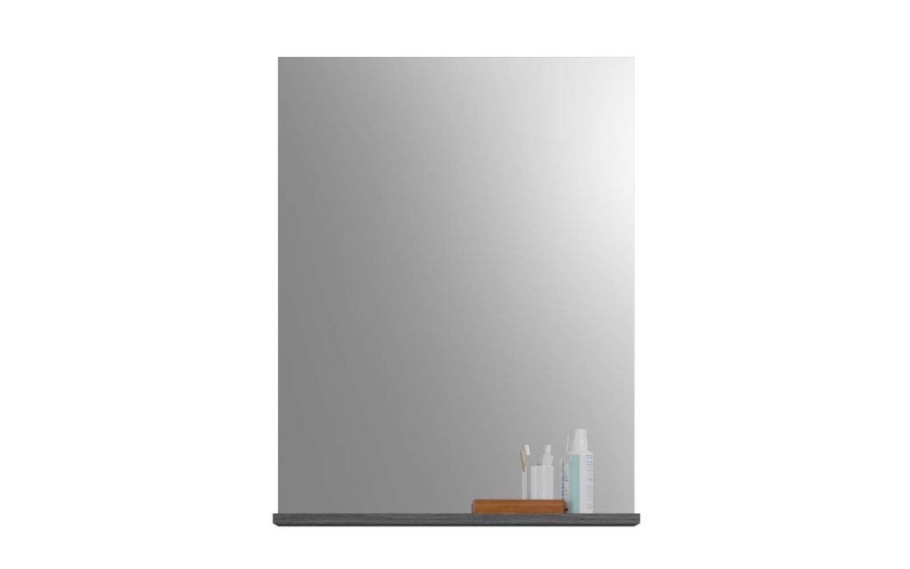 Spiegel aus Spanplatte in Rauchsilber Nachbildung inklusive Ablage, ohne Beleuchtung, B/H/T ca. 60 x 79 x 18 cm.