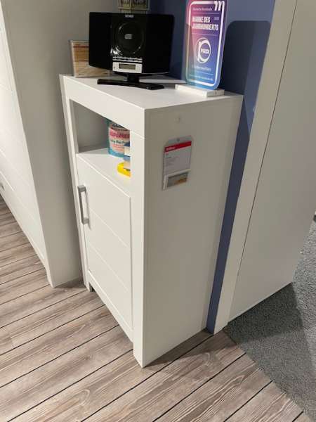 Kunststoff Kreideweiß 1 offenes Fach, 1 Tür und 1 Einlegeboden Griff Chrom matt BHT ca. 63,10 x 114,70 x 39,30 cm