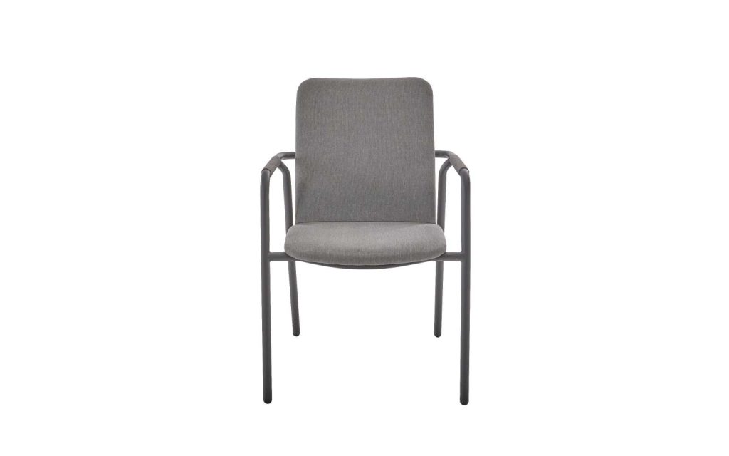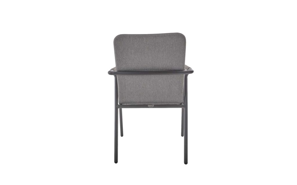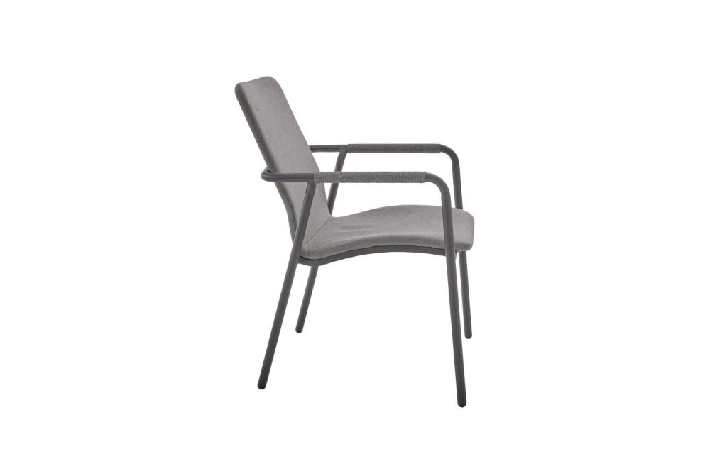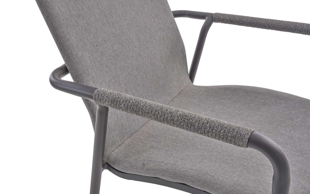 Ausführung mit Aluminiumgestell in anthrazit matt pulverbeschichtet, Flächen in Texfabric hellgrau mix, Armlehnen aus Kordel in hellgrau mix,