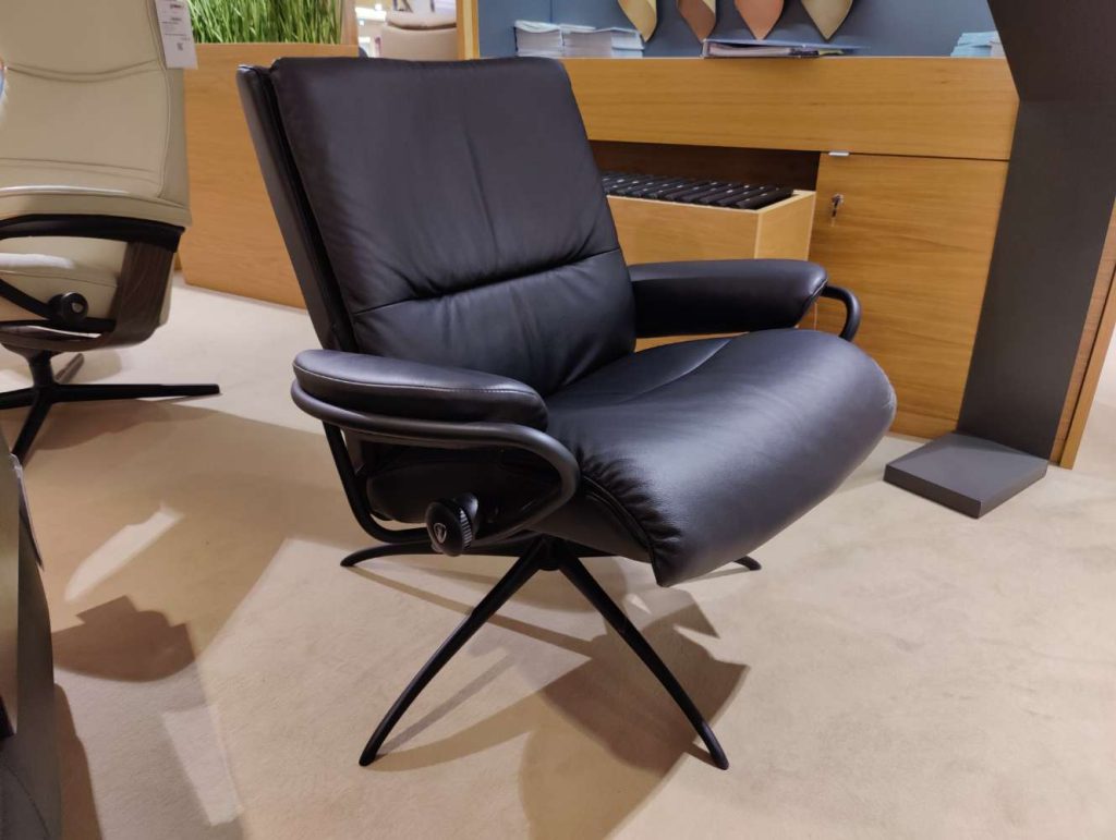 Der Tokio mit niedriger Rückenlehne, bekannt als Low Back, fügt sich perfekt in jede moderne Umgebung ein und bietet gleichzeitig idealen Sitzkomfort dank einer patentierten Technologie, die Stressless zu einer renommierten Marke in der Möbelbranche macht. Die matt schwarzen Füße des Sessels verleihen ihm ein zusätzliches stilvolles Detail, das die schlichte Schönheit des Designs unterstreicht.