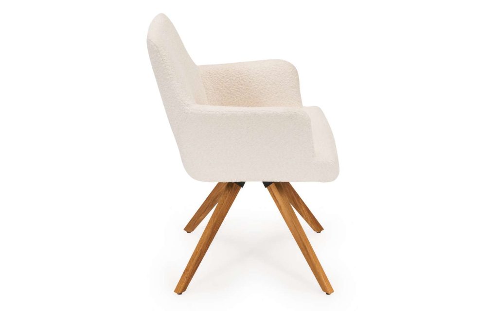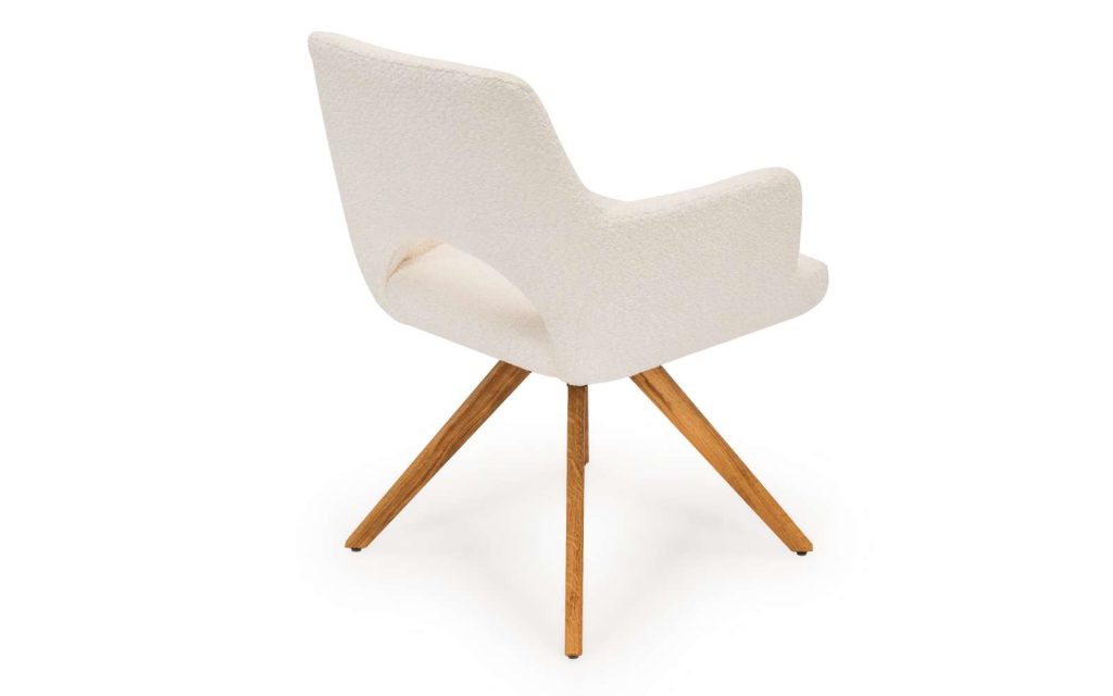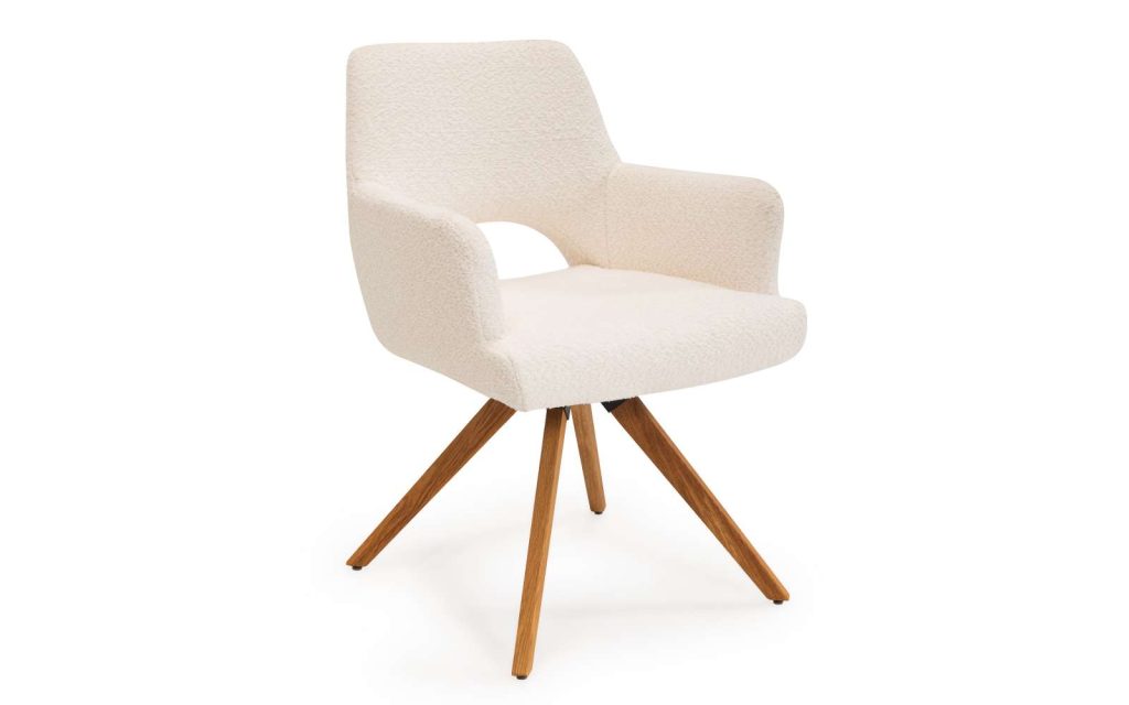 Stuhl aus Stoff Teddy in cream, formschönes Gestell aus Eiche geölt, Sitz mit Wellenfederung, B/H/T ca. 61 x 86 x 64 cm.
