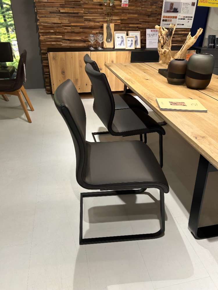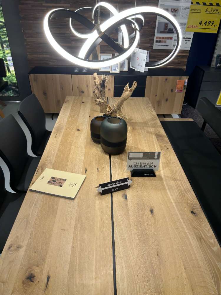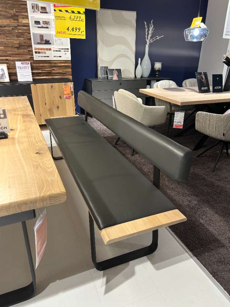 Essgruppe bestehend aus: Ausziehtisch (L/B/H 225-345x75x100), EICHE WILD- |SORTIERUNG WEISSÖL 3x Schwingstuhl LEDER 70241 ANTHRAZIT Sitzbank: B/H/T 225x81x52, EICHE WEISSÖL, |LEDER 70241 ANTHRAZIT