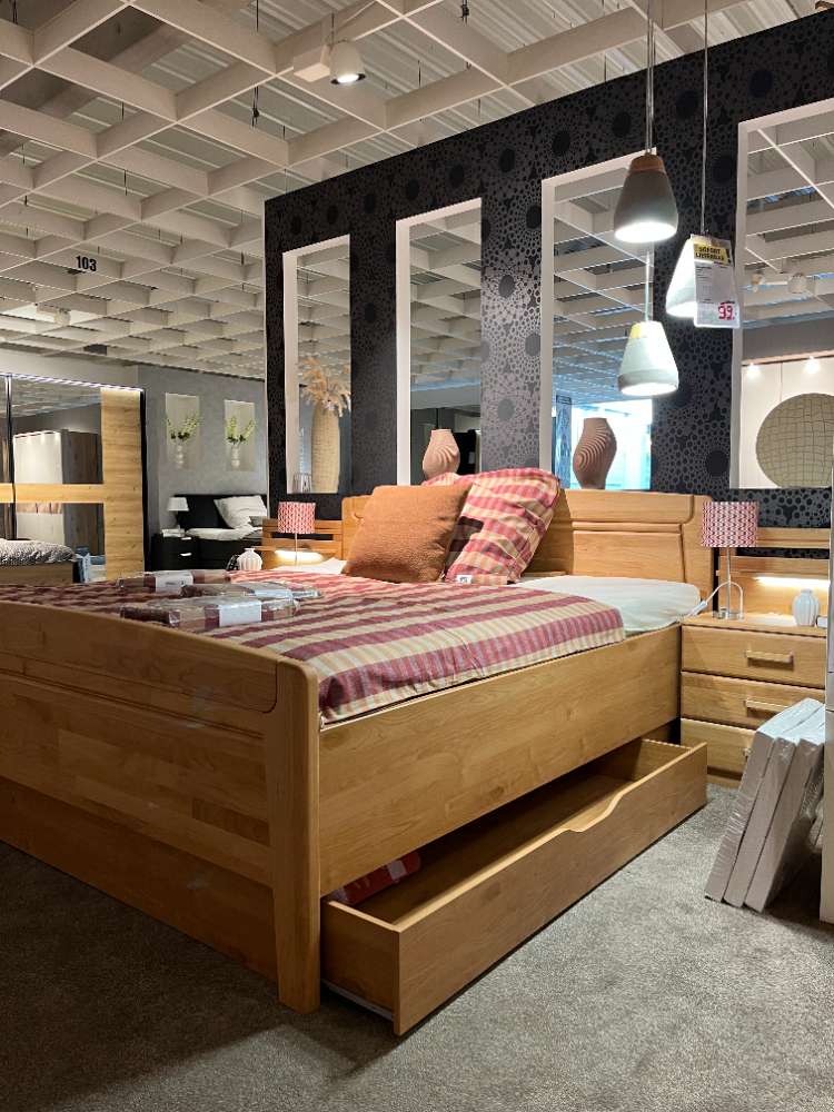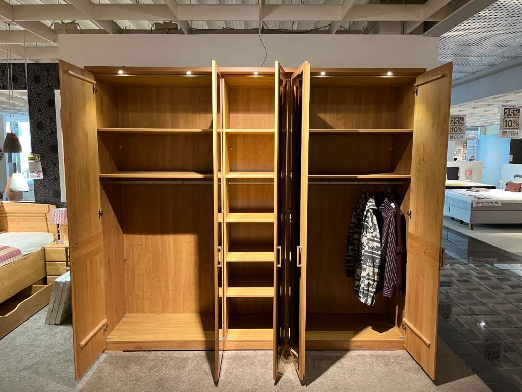 BemerkungDieser elegante und geräumige Schrank aus hochwertigem Erlenholz strahlt eine natürliche Wärme aus, die jedem Raum eine einladende Atmosphäre verleiht. Mit einer beeindruckenden Breite von etwa 2,50 Metern bietet er großzügigen Stauraum, um Ihre Kleidung und Accessoires stilvoll zu organisieren. Ergänzt wird dieses Ensemble durch ein ebenso ansprechendes Bett, das mit seinen Maßen von 1,80 x 2 Metern ideal für entspannende Nächte gestaltet ist. Diese Schlafoase bildet den Mittelpunkt Ihres Schlafzimmers und harmoniert perfekt mit dem Schrank zu einem einheitlichen ästhetischen Gesamtbild. Diese Ausstellungsware vereint Funktionalität mit natürlichem Charme und wird so zu einem Highlight in Ihrem Zuhause.