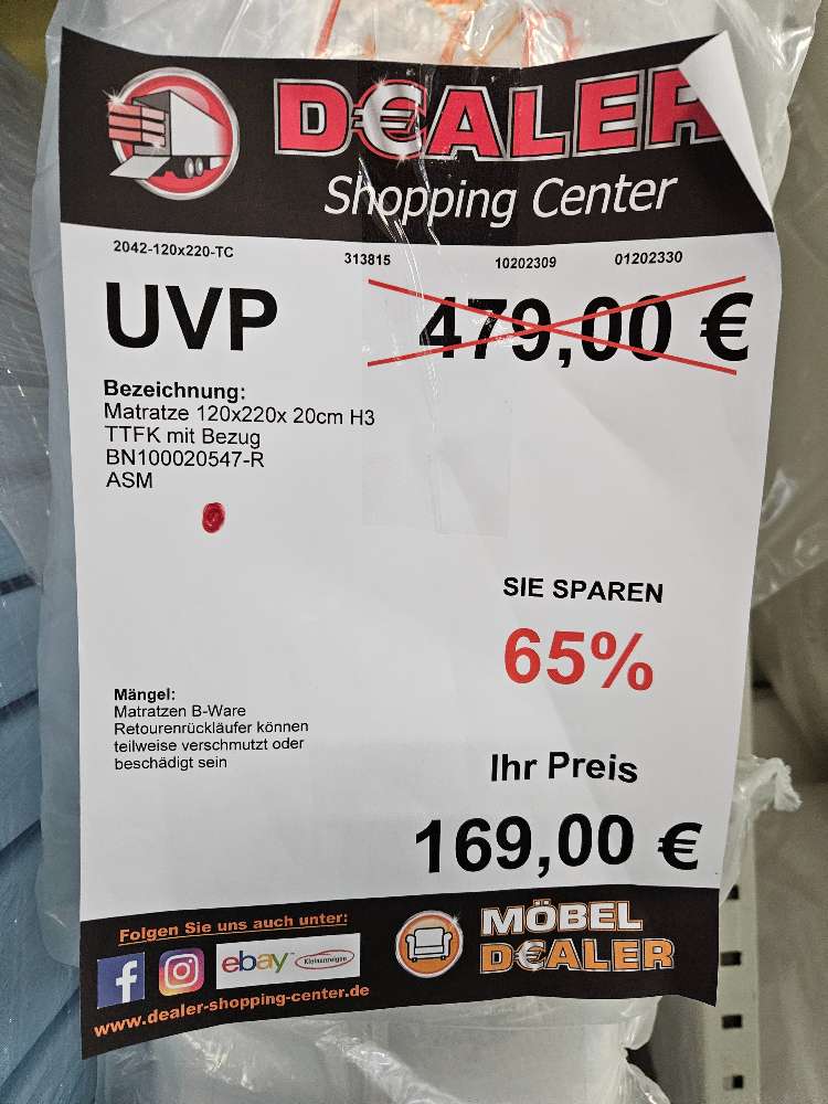 Tencel Matratze 120x220cmx20cm H3 statt 479€