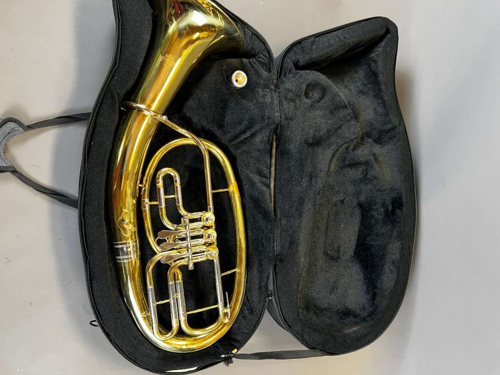 - gebrauchtes Tenorhorn "Roy Benson" - Rückläufer aus unserem Mietinstrumentenpool - abgegriffener Lack (siehe Bild) - Koffer hat div. Gebrauchsspuren - spielfertig gerichtet Instrument wird ohne Instrumentenständer verkauft!