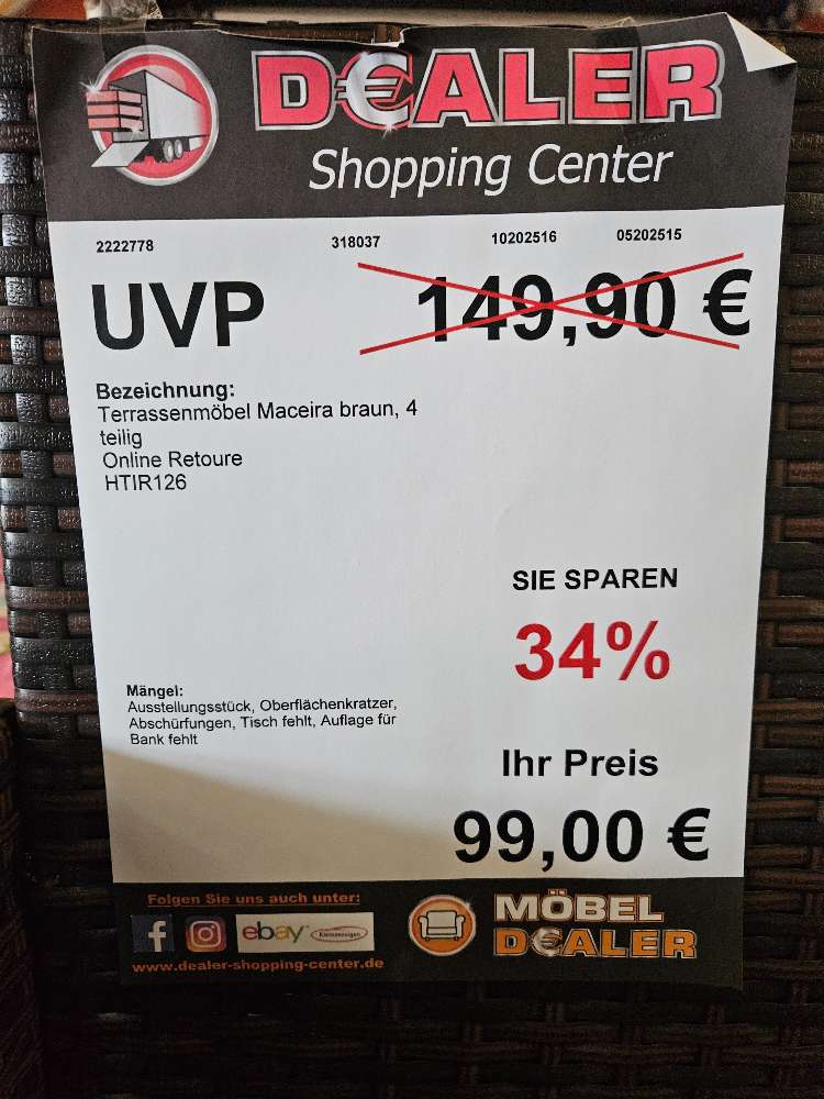 Terassenmöbel Maceira Braun Rattan statt 149,90€